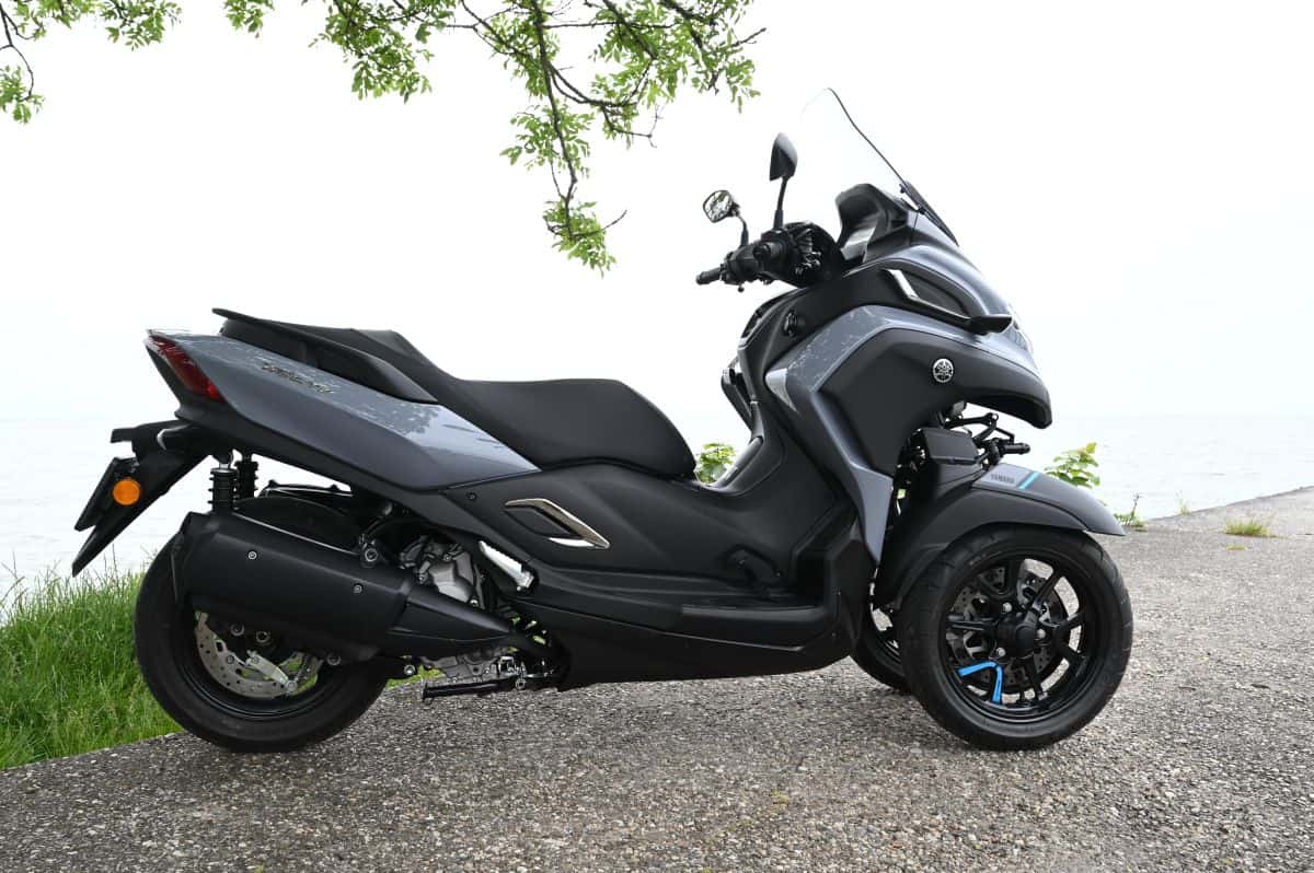Verder is de motor bijzonder mooi afgewerkt. Geen kierende naden, hinderlijk aanwezige kabels of onlogisch geplaatste elementen. Het maakt de Tricity 300 tot een ideaal wapen tegen files en een ideale metgezel voor de automobilist die op een veilige manier wil genieten van de vele voordelen die het motorrijden biedt. En misschien nog wel meer, want de Tricity 300 laat zich niet zomaar uit het veld slaan. De enige drempel die met deze Yamaha mogelijk wat lastig te nemen is, is de prijs. Hoewel zeer goed te verantwoorden, is deze met € 9.399,- (België: € 8.199,-) toch wel fors.