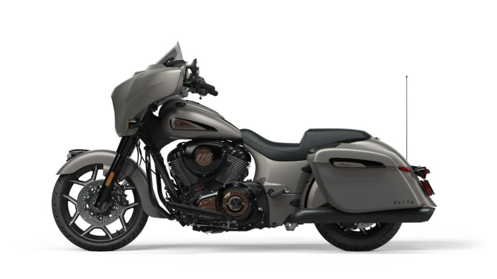 De Chieftain Elite springt in het oog met zijn Heavy Metal Smoke-kleurstelling met bronskleurige details. Hart van deze Chieftain is het Thunderstroke 116-blok met een flinke 171 Nm koppel en ook hier is standaard een adaptieve led-koplamp aan boord en verder een verstelbare, getinte ruit, grote aluminium treeplanken, zadeltassen met led-verlichting en ook een audiosysteem. Naar wens kunnen beide Elite-modellen uiteraard nog verder worden gepersonaliseerd. Info: www.indianmotorcyclebenelux.com