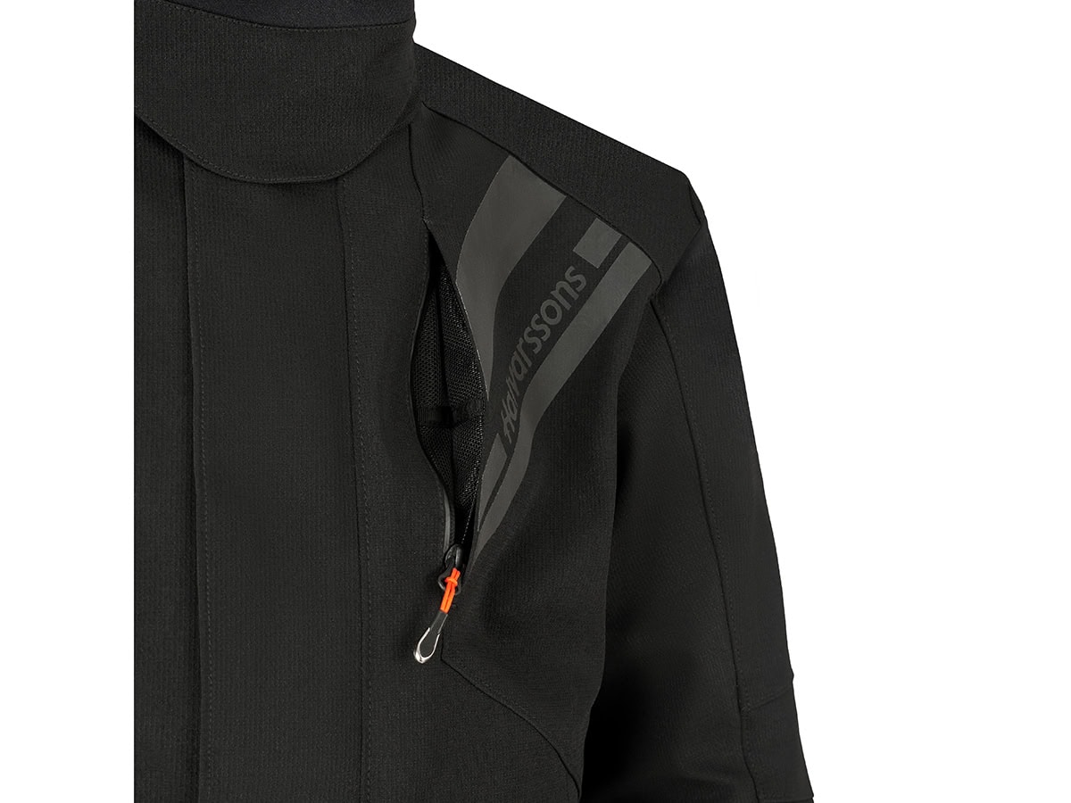 Dat dit Halvarssons nu gelukt is, dankt het onder meer aan het nieuwe zogeheten Powblk Flex textiel met four-way stretch dat de basis van de H80 vormt. Dit weefsel is zowel scheur- als slijtvast, maar voorziet tegelijkertijd ook in optimale bewegingsvrijheid. Een Dryway membraan en afneembare stormkraag houden regen en wind buiten de deur, acht ventilatieopeningen houden de boel luchtig op warme dagen, terwijl een uitneembaar, los te dragen Innoborn thermojack juist op koudere dagen de warmte goed vasthoudt. Daarnaast is het pak ook nog voorzien van een temperatuur regulerende Outlast-binnenvoering, die zowel op koude als warme dagen zijn meerwaarde bewijst.