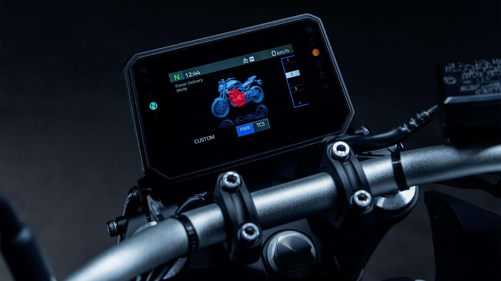 Nieuw is de dat MT-07 voor het eerst in zijn bestaan van Yamaha Chip Controlled Throttle, ride-by-wire dus, en dat betekent dat de MT-07 nu ook voor het eerst een rits elektronische hulpsystemen heeft. Zo heeft de Yamaha nu drie rijmodi: Sport, Street en een vrij configureerbare. Ook is er tractiecontrole met twee regelniveau’s aan boord en desgewenst kan deze worden uitgeschakeld. Sport is gekoppeld aan vermogensmapping PWR1 en tractiecontrole TCS1, Street aan PWR2 en TCS2. Daarnaast is er nog een derde vermogensstand, PWR3 inderdaad, die zich het meest leent voor natte weersomstandigheden. Deze drie vermogensmapping en de settings voor de tractiecontrole zijn vrij te kiezen voor de vrij configureerbare rijmodus.