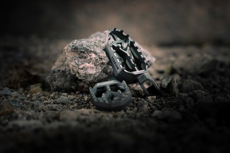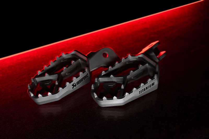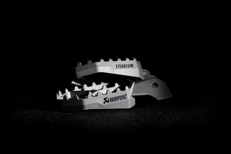 Akrapovič verbreedt overduidelijk de horizon. Naast de overbekende uitlaatsystemen lanceert het titanium voetsteunen voor een selectie groep allroadmotoren.