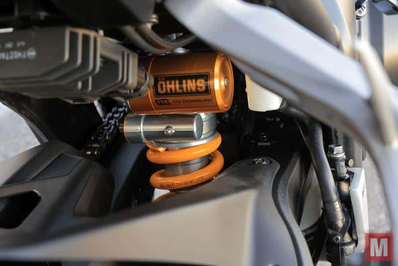 Niet alleen rijmodus Rain overtuigt, de remcombinatie van Brembo voor en Nissin achter doet hetzelfde. Als je wilt kunnen de remblokken van de Stylema voorrem de schijven werkelijk zijdezacht strelen. Knijp je vervolgens iets enthousiaster door dan doen de Italiaanse remmen net zo enthousiast, maar vooral daadkrachtig mee. We weten natuurlijk niets over de kwaliteiten van de standaard remmen en op de gewone Hornet, maar de Brembo’s lijken hun geld waard. Hetzelfde verhaal gaat op voor de Öhlins-demper achter. We weten niet hoe goed de reguliere Showa het doet, maar de Zweedse demper (of moet ik hier Italiaans schrijven omdat Brembo onlangs Öhlins overnam?) weet fraaie rapportcijfers te overleggen. De monoshockdemper weet goed raad met zowel grote als kleine oneffenheden en bewaart op een zeer comfortabele manier de rust en comfort. De voorvork spreekt op slecht asfalt en vooral bij opeenvolgende kleine oneffenheden iets minder fijngevoelig en wat stugger aan. Volgende keer de ingaande demping toch maar wat zachter zetten.