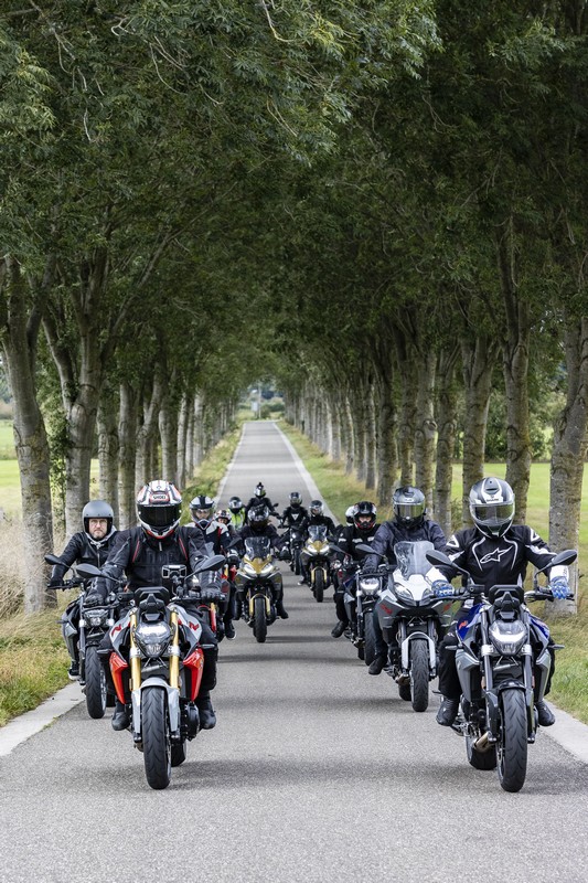 BMW en opties, het is een soort van twee-eenheid. Iets dat we ook bij deze lezerstest weer terugzagen. Tien F900’s stonden het testpanel ter beschikking, keurig vijf van elk type. Daarvan echter twee A2-machines, een paar met verlaagd zadel, een paar standaard, met hoog zadel, met up/down quickshifter en zonder. Er werd onderling kortom fanatiek door gewisseld, zodat iedereen aan het eind van de 150 kilometer lange testrit ook echt alle uitvoeringen had gereden. En wat hun bevindingen waren? Dat lees je op deze en volgende pagina’s!