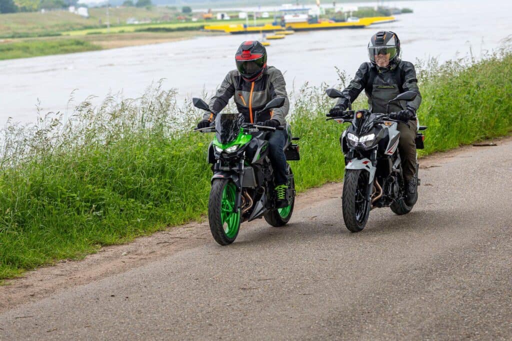 Maar afijn, qua zithouding doet het duo nagenoeg niets onder voor elkaar. Rond de gemiddelde A2-motorfiets hangt vaak een zweempje ‘kleine jongen’, maar dat is zowel bij de Z400 als 500 allerminst het geval. Beide voelen gewoon als een volwaardige motorfiets aan en bieden voldoende onderdak voor deze niet echt compacte testrijder (1.90 meter), al houdt het ook weer niet echt over. De houding op beide sluit daarbij mooi aan op het naked bike concept, is actief waarbij de wijzer door onder meer de relatief hoge voetsteunen meer doorslaat naar sportief dan comfort. Na een uurtje in het zadel zijn lijf en leden wel toe aan een korte pauze, al is de zit zeker niet vermoeiend.