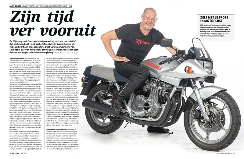 De Dijk zong ooit: ‘een man weet pas wat hij mist, als ze er niet is’. Dat ondervond ook Henk Verberk toen hij zijn Suzuki Katana uit 1984 verkocht aan onze eigen fotograaf Guus van Goethem. “En spijt dat ik daarvan heb gehad, dat wil je niet weten. De tranen stonden me in de ogen toen ik hem terugkreeg.”