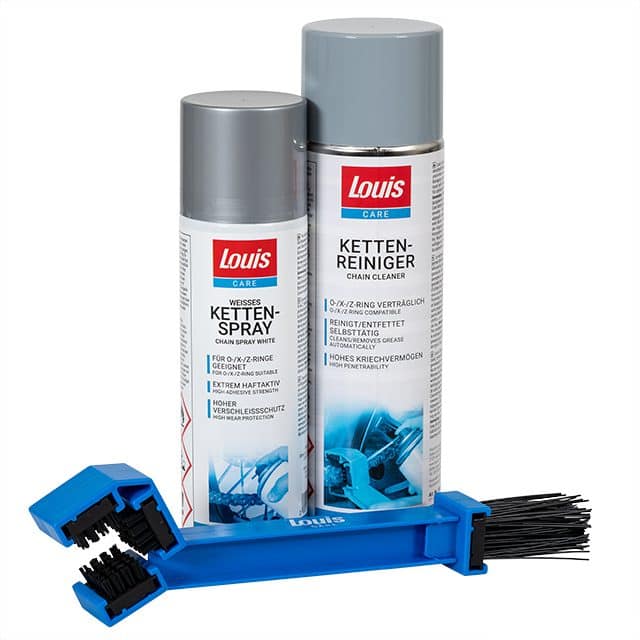 2. Louis Care kettingverzorgingsset – Voor een soepele kettingDe Louis Care kettingverzorgingsset is een must-have voor elke motorrijder die waarde hecht aan een goed onderhouden ketting. Met onze hoogwaardige kettingreinigingsborstel en kettingreiniger verwijder je snel en eenvoudig vuil en aanslag, waardoor de levensduur van je ketting verlengt en elke rit soepel verloopt. De set bevat ook een hoogwaardige kettingspray die slijtage vermindert en zorgt voor een langdurige smering. |