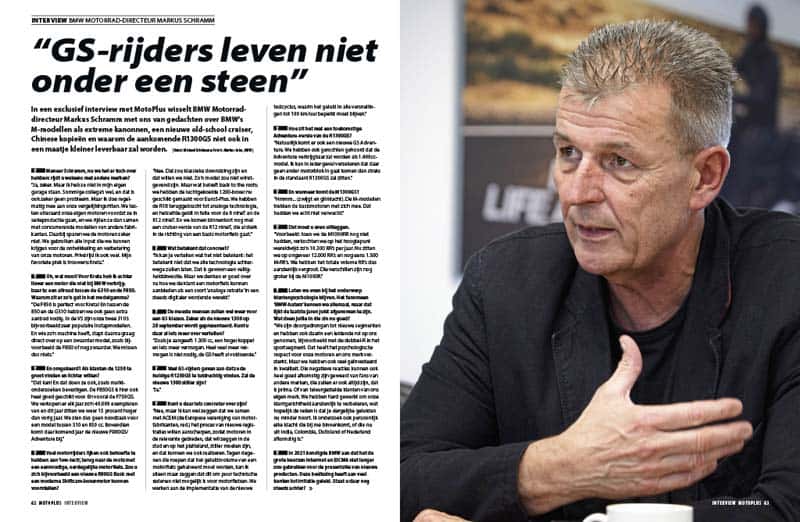 In een exclusief interview met MotoPlus wisselt BMW Motorrad-directeur Markus Schramm met ons van gedachten over BMW’s M-modellen als extreme kanonnen, een nieuwe old school cruiser, Chinese kopieën en waarom de aankomende R1300GS niet ook in een maatje kleiner leverbaar zal worden.