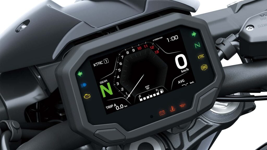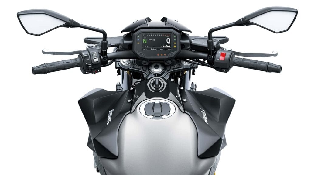 Ter info: het 2025-model Z650 levert 68 pk bij 8.000 tpm en 64 Nm bij 6.700 tpm. Bij de nieuwe Z650S lijken er wat dat betreft geen heel grote afwijkingen te verwachten. Helaas geen standaard quickshifter op de Z650S, al is deze er wel als accessoire. Deze werkt echter enkel bij opschakelen en pas vanaf 2.500 toeren. Net als de Z650 heeft de ’S’ instelbare en uitschakelbare tractiecontrole (KTRC) en een slipperkoppeling.