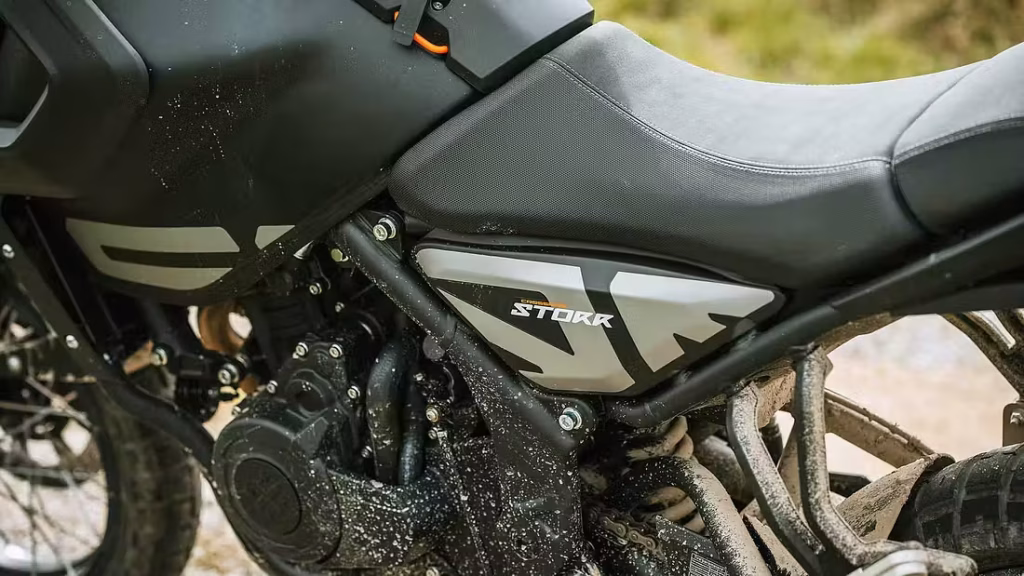 Maar de Storr staat niet alleen: tijdens de presentatie was het concept redelijk uniek, maar inmiddels is hij door de tijd ingehaald. Het concept van de Storr 500 uit 2022 was al gebaseerd op de Scrambler Crossfire 500. De motor en het chassis werden aangepast en omgebouwd tot een enduro. Waarom Brixton de sterke naam Storr nu definitief heeft gecombineerd met Crossfire, is niet duidelijk en stoort waarschijnlijk alleen puristen. Qua motor verrast de Storr niet. Zoals bekend: watergekoelde twin met 486 cc. A2-conform met een nominaal vermogen van precies 35 kilowatt (ongeveer 48 pk) bij 8.500 tpm en een maximumkoppel van 43 Nm bij 6.750 tpm.