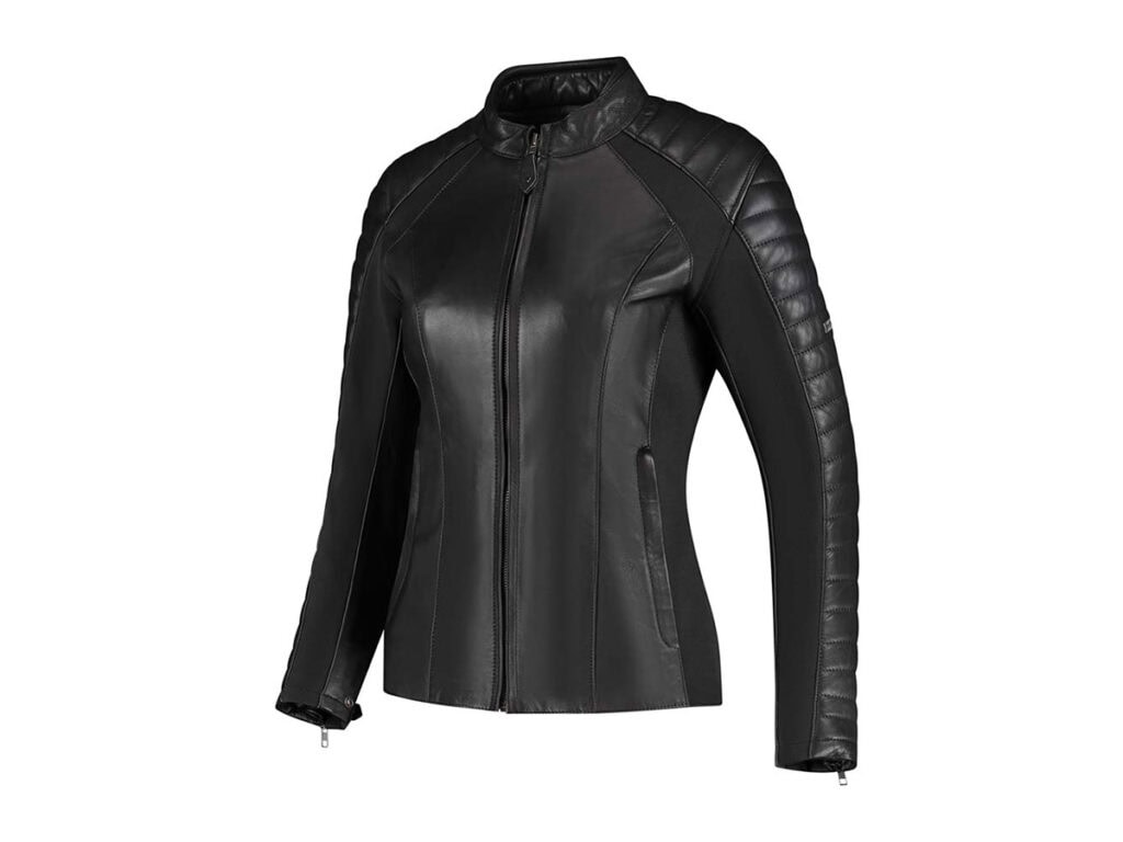 Verder beschikt de Donna over zes zakken, waarvan twee aan de buitenkant en vier binnenzakken. De AA-gecertificeerde jas heeft uiteraard ook de nodige protectoren aan boord, en wel op schouders en ellenbogen, terwijl het rugpand is voorbereid op een optionele rugprotector. De retro Donna (maten 36 tot en met 46), is er in een volledig zwarte en rood/zwarte versie, en wel voor de prijs van € 349,95.