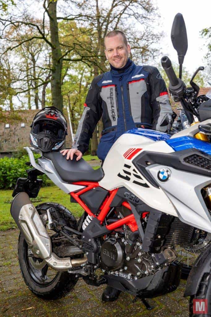 Wegrijdend op de G310GS voelt het meteen als vertrouwd. De zitpositie is zeer aangenaam, de geometrie klopt waardoor het lang uit te houden is, al is het zadel aan de ietwat harde kant. Meteen valt op dat je te maken hebt met een lichtgewicht motorfiets. Deze motor kan je op elke millimeter asfalt mikken, wat een speels karakter! De vering is afgesteld op comfort, waardoor bij hard remmen de voorkant aardig induikt. Toch kan er ook goed hard gereden worden. Het grote voordeel van de weinige pk’s is dat je voor elke bocht al vol op het gas kan. Als een 800 of 1300 vervolgens van je wegblaast, is door de soepele en lichte versnellingsbak en het flinke toerenbereik het plezier er niet minder om vol gas proberen bij te blijven. Door het fantastische motor- en airbox geluid is een grote glimlach op het gezicht gegarandeerd. Standaard handkappen, handvatverwarming en een middenbok zal het pakket voor dagelijks gebruik beter maken, want de ‘kleine’ 310 verrast!