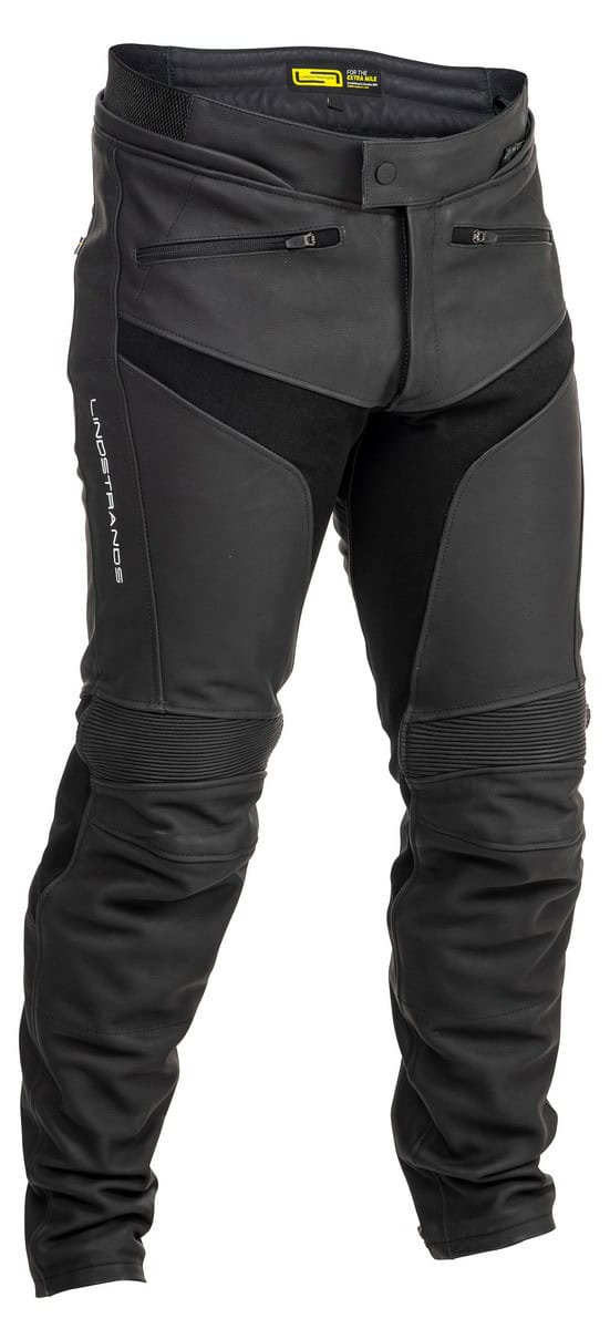 De Sanden jas, verkrijgbaar in de kleuren zwart en zwart/wit, is er in de maten 46 tot en met 62 en kost € 449,00. De enkel in het zwart verkrijgbare Sanden broek is er in de maten 46 tot en met 60, deze kost € 349,00. Info: www.lindstrandsmc.com