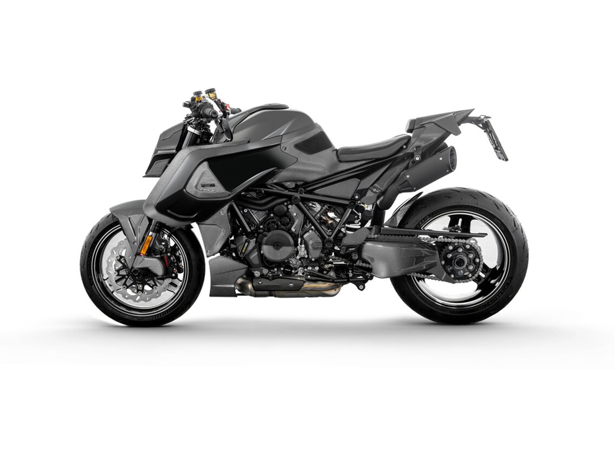 De Brabus 1400R Signature Edition is de logische opvolger van de Brabus 1300R. De productie is beperkt tot slechts honderd exemplaren. Heb je daardoor vliegende haast met bestellen weet dan wel dat er een prijskaartje van meer dan een halve ton aan dit rijkelijk met carbon behangen collectors-item hangt. De basis is net alle voorgaande keren de KTM Super Duke R Evo. Als 1390-variant is die goed voor 190 pk en 145 Nm.