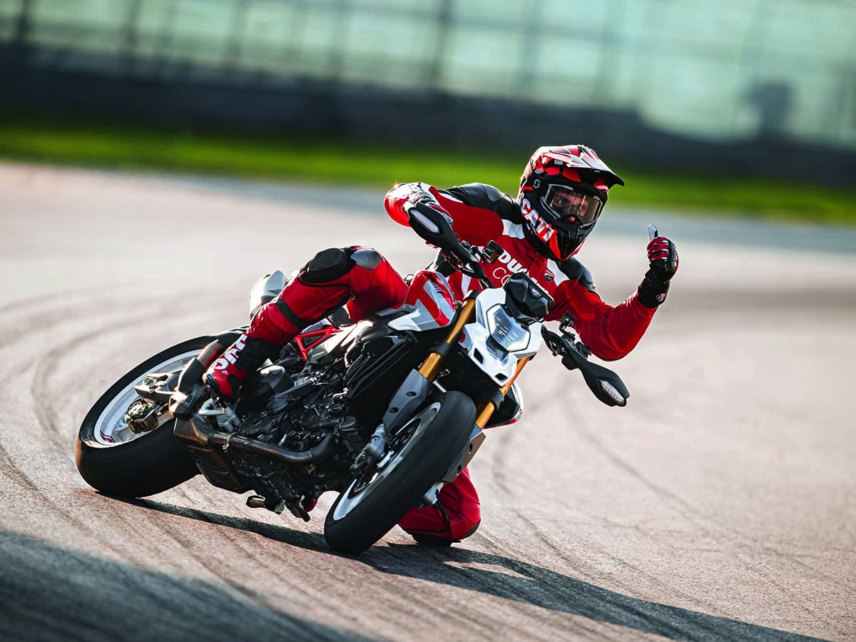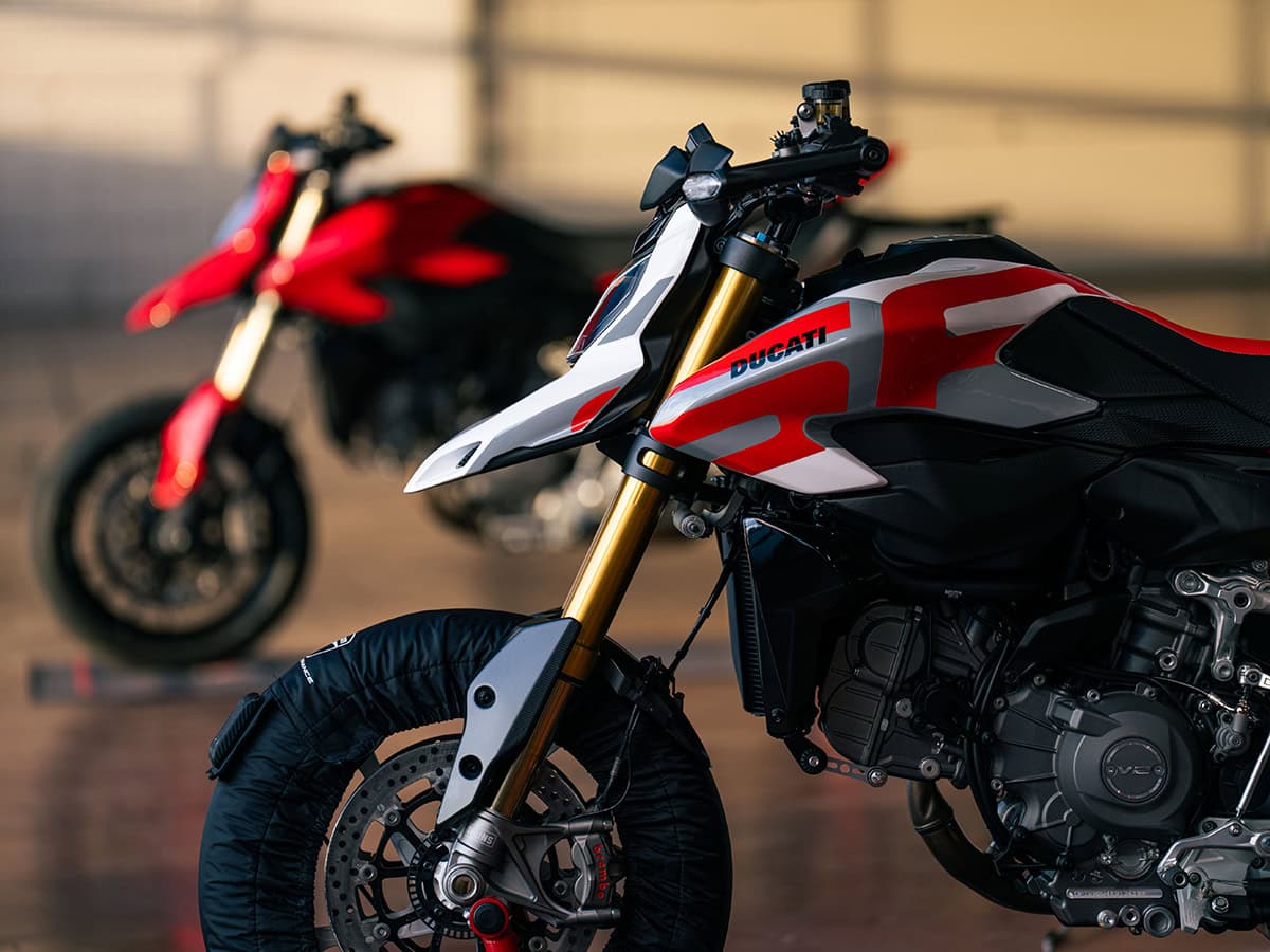 De Panigale V2 MM93 en FB63 limited editions, die vooral van zich doen spreken met de prachtige sportieve kleurstellingen, trekken niet geheel verwonderlijk de nodige aandacht op de Ducati-stand. Toch zijn de meeste ogen gericht op de jongste uitbreiding van nieuwe V2-platform in de vorm van de nieuwe Hypermotard V2. En die komt er meteen in twee varianten: een basisversie en sportievere SP. Het design is minimalistisch, scherp en modern, maar bovenal nog altijd héél erg Hypermotard, wat zich voornamelijk kenmerkt door de sterke verwantschap met de supermoto gemeenschap. In de nieuwe Hypermotard levert het net als in de beide andere sportieve versies (Panigale en Streetfighter red.) 120 pk, terwijl het maximum koppel zelfs nog een marginaal hoger is (94 tegenover 93,3 newtonmeter). Het rijwielgedeelte wordt gecompleteerd door een aluminium swingarm, die verrassend genoeg dubbelzijdig is uitgevoerd, waar de huidige Hypermotard 950 nog over een enkelzijdige variant beschikt. De nieuwe Hypermotard en Hypermotard SP staan vanaf april 2026 bij de dealer. Prijzen worden in een later stadium bekend gemaakt.