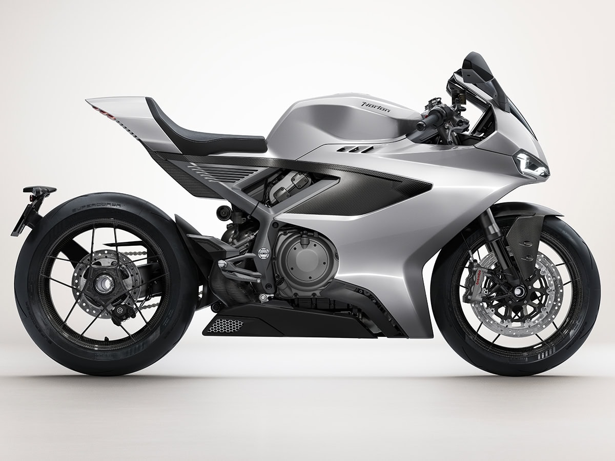 Norton komt de komende jaren naar eigen zeggen met zes nieuwe modellen, waarvan de eerste nu in Milaan aan het publiek is getoond. Het betreft de Manx en Manx R, een messcherpe volbloed superbike die vooral opvalt door het ontbreken van dikke winglets en andersoortige vleugels. En dat terwijl er toch wel de nodige power moet worden beteugeld: de Brit wordt namelijk aangevuurd door een hagelnieuwe 1.200 cc V4 met een compacte blokhoek van 72 graden. In plaats van piekvermogen heeft Norton zich bij de ontwikkeling vooral laten leiden door bruikbare spierballen in het middengebied, al heb je met een topvermogen van 206 pk natuurlijk niets te klagen. Uiteraard maakt Norton gebruik van het beste van het beste, getuige onder meer de carbon wielen van BST en Bremo Hypure monoblok remklauwen.
