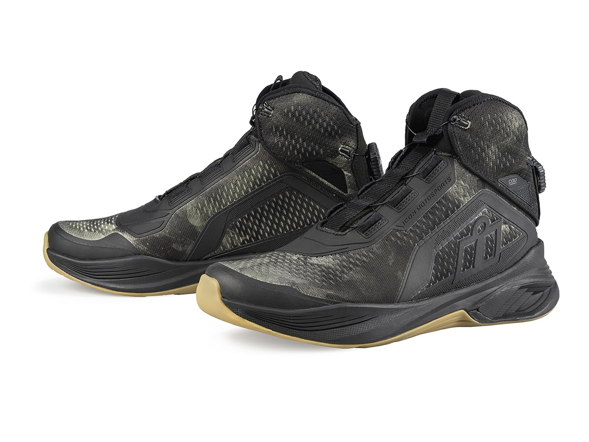 De nieuwe Icon Hooligan AF CE is er in de maten 39 t/m 48,5 met de keuze uit drie kleuren: zwart, wit en grijs camo. De prijs bedraagt € 179,00. Info: www.rideicon.com