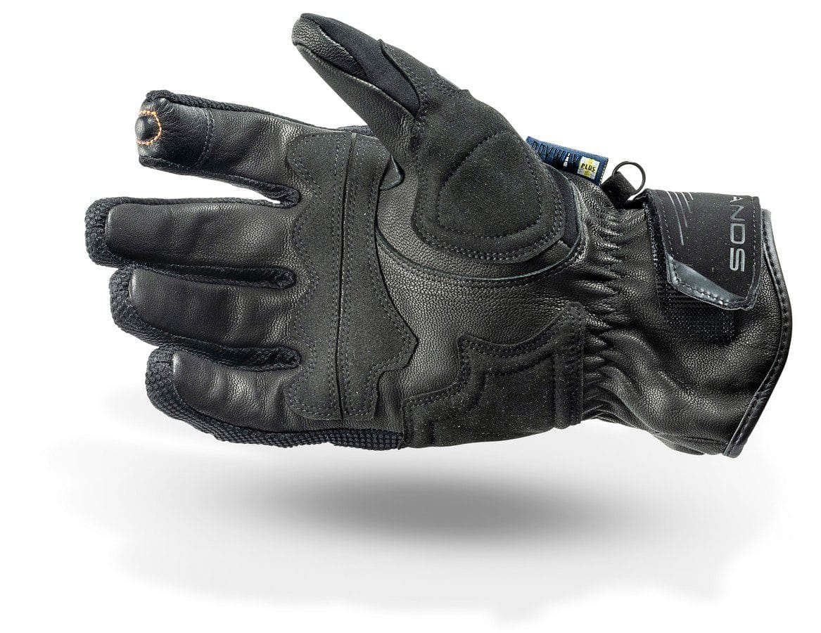 Daarbij moet de toervariant zich van een behoorlijk allround kant moet laten zien. Deze moet bijvoorbeeld waterdicht zijn, maar tegelijkertijd ook ademend, comfortabel dragen, en bovenaan het eisenlijstje staat natuurlijk de veiligheid. Deze Sveg van het Zweedse Lindstrands is zo’n alleskunner. De handschoen is voorzien van een level 1 knokkelprotector, evenals Hi-Art verstevigingen en dubbel materiaal op valgevoelige plaatsen. Verder is de geitenleren Sveg uitgerust met een Dryway+ membraan, dat ook tijdens een regenbui nog droge handen garandeert, en dankzij de Skinfit XTR laminaattechnologie blijft de binnenvoering altijd netjes op plaats. Ook prettig, de wijsvingers zijn touch screen compatible, zodat je navigatiesysteem of telefoon ook gewoon met de handschoenen aan kunt bedienen.