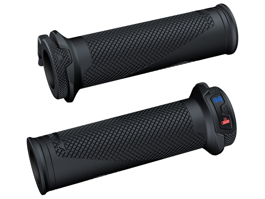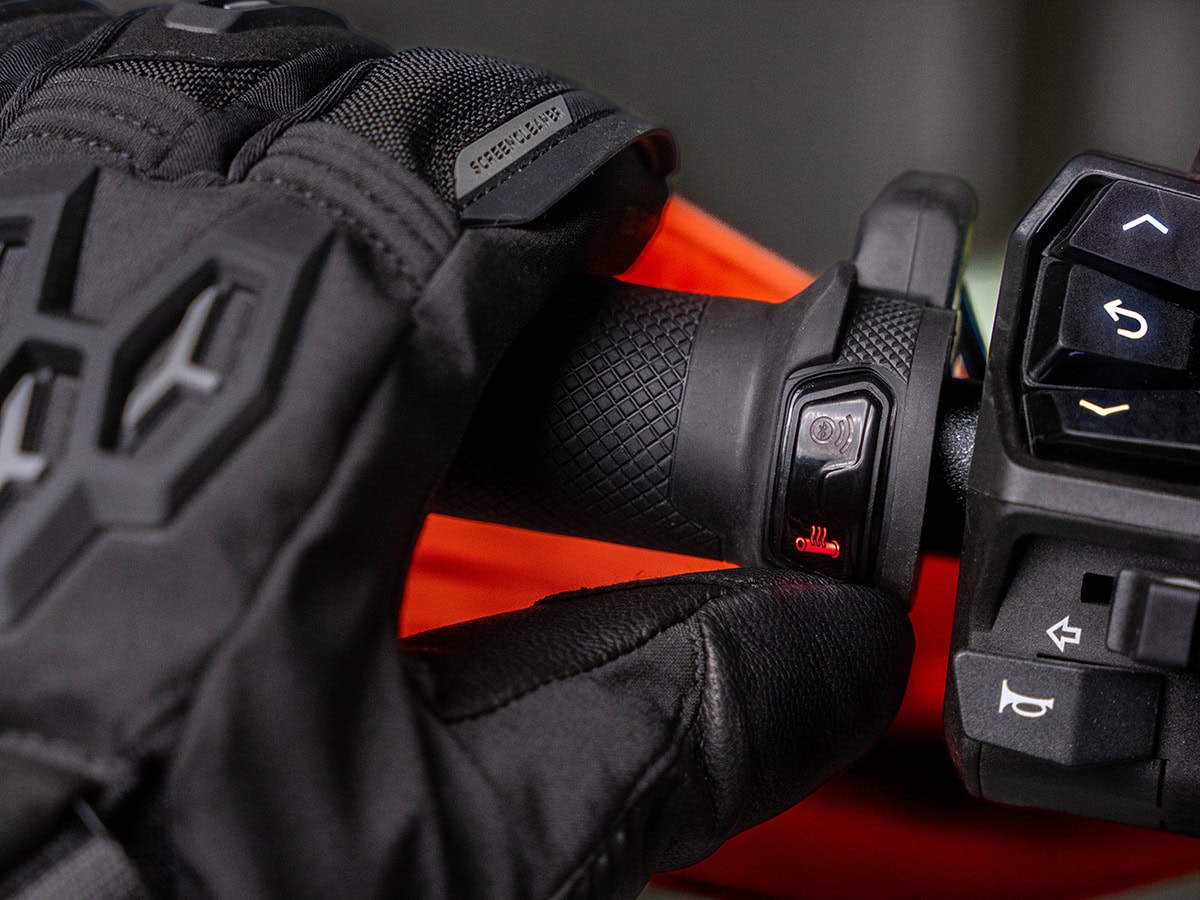 Te beginnen bij die eerste: de Heated Grips, die passen op elk Ø 22 mm stuur (zowel met als zonder stuureinden), zijn voorzien van duurzame Powervein verwarmingsdraden, die instelbaar zijn op vier verwarmingsniveaus. Ook de Ascent midlayer met donsvoering is doorlust met Powervein draden en kent eveneens vier standen. Waar de handvatten standaard op de boordspanning moeten worden aangesloten, heb je bij het jack de keuze tussen boordspanning of externe accu. Dat laatste is bijzonder praktisch wanneer je de jas ook wel eens los wil dragen tijdens andere buitenactiviteiten.