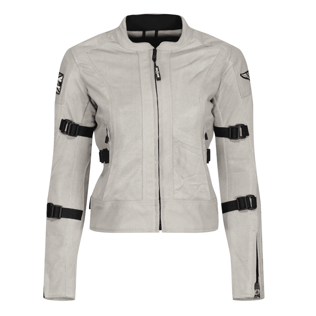 Inmiddels heeft de fabrikant uit Tonbridge, Kent (Groot-Brittannië) een zeer uitgebreide lijn aan vrouwelijke motorkleding, waaronder deze Jodie: een lekker sportief, getailleerd zomerjack. Dankzij ruime meshpanelen op de voorzijde geniet de jas een heerlijk luchtig karakter, perfect voor de warme dagen. De AA-gecertificeerde Jodie is uitgerust met level 1 protectoren op schouders en ellenbogen en daarnaast voorzien van een pocket voor de optionele rugprotecor. Verder omvat de uitrusting onder meer wijdteverstelling bij mouwen en heup, twee buiten- en twee binnenzakken en padding bij kraag en mouwboorden voor een extra hoog draagcomfort.