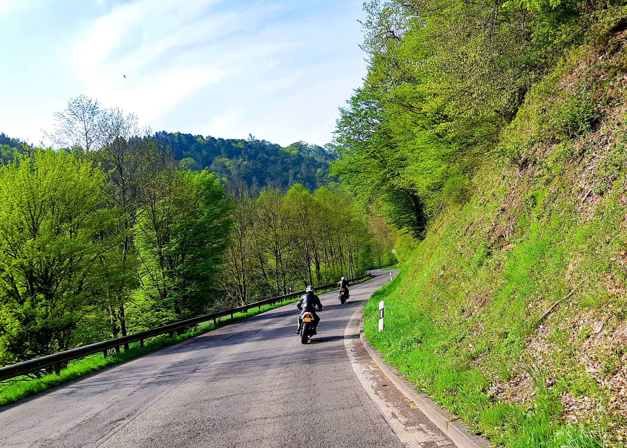 Vanuit de gezellige uitvalsbasis in Kirchen ontdek je iedere dag een andere kant van deze veelzijdige regio. Het Westerwald combineert natuur, cultuur en puur motorplezier, en ligt toch relatief dicht bij huis. Op de heenweg naar het hotel kom je al lekker in de stemming met een mooie route door het Nationaal Park Eifel en langs de indrukwekkende Rursee. Langs de rivier de Wied rijd je vervolgens het Westerwald binnen en schuif je ’s avonds aan voor een hapje en een drankje in Hotel Zum Weissen Stein.