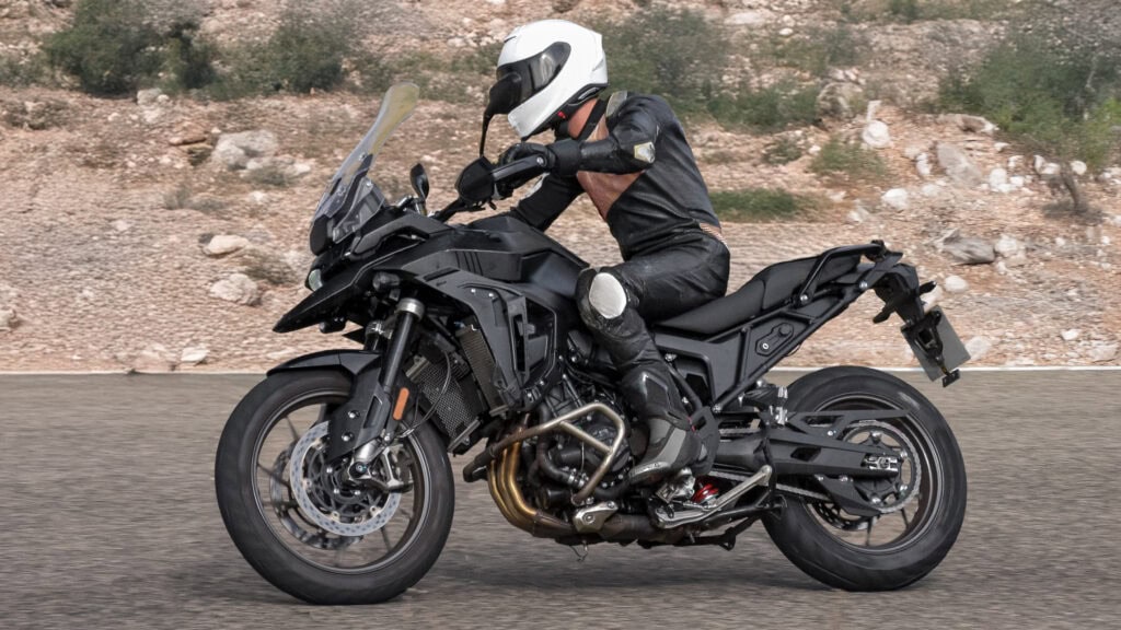 Het ontwerp van het prototype is nog niet definitief – de tijdelijke verlichting aan de voorkant is daar een duidelijke aanwijzing voor. Talrijke onderdelen moeten nog worden bijgeschaafd, maar het zeer gedetailleerde en forsere windscherm geven aan dat de allereerste ontwikkelingsstappen al achter de rug zijn. Het zal echter nog minstens een jaar duren voordat het model klaar is voor serieproductie, dus vóór 2027 zullen we de Tiger 950, zoals hij mogelijk gaat heten, nog niet op de weg zien.