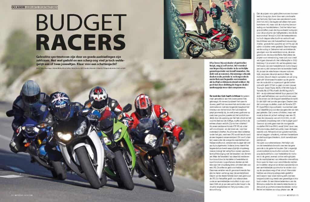 Sta open voor alternatieven. Het helpt ook om de tweedehandsmarkt over een langere periode in de gaten te houden. Dat is eigenlijk onvermijdelijk bij exotische motoren. Houd populaire platforms voor tweedehands motoren in de gaten, evenals online veilinghuizen en de marktplaatsen van relevante internetfora. Door open te staan voor verschillende merken en modellen vergroot je de kans aanzienlijk om een aantrekkelijke sportmotor te vinden voor op de openbare weg of het circuit. Hieronder hebben we drie prijscategorieën gedefinieerd waarin naar onze mening zelfs met een krappe buidel nog steeds een geweldige motor kunt vinden. En een kleine bekentenis van de Motoplus-redactie: de meeste redacteuren rijden privé op portemonneevriendelijke motorfietsen en hebben er volop plezier van.