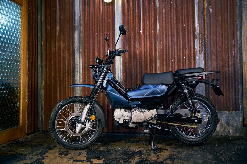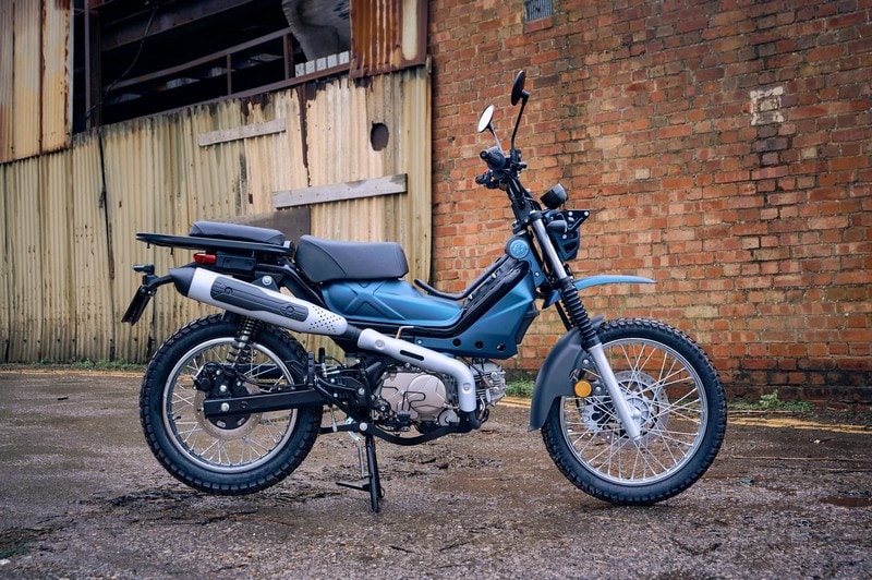 Als we wat inzoomen op dat laatste ruig ogende motorfietsje – die een directe concurrent is voor de hier eveneens niet verkrijgbare Honda CT125 Hunter Cub – zien we een liggend 125cc viertakt tweekleps OHC blokje. Het moet goed zijn voor zo’n 13 pk. De Imber weegt 115 kilo, de zadelhoogte bedraagt 810 millimeter en de benzinetank bedraagt slechts 8,5 liter, maar waarschijnlijk is het verbruik zo gering dat een volwassen actieradius er toch inzit.