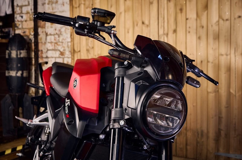 Kijken we juist naar een gangbaarder moderne naked dan komt de JS125-X in beeld. Ook hier een 125cc viertakt in het vooronder, maar eentje met een vloeistofgekoelde staande cilinder en vier kleppen. Daardoor komt het vermogen op bijna 15 pk uit. Met een geclaimd verbruik van 1:41 sta je niet te veel bij de benzinepomp. Bij het rijwielgedeelte zien we onder meer ABS en een upside down-vork.