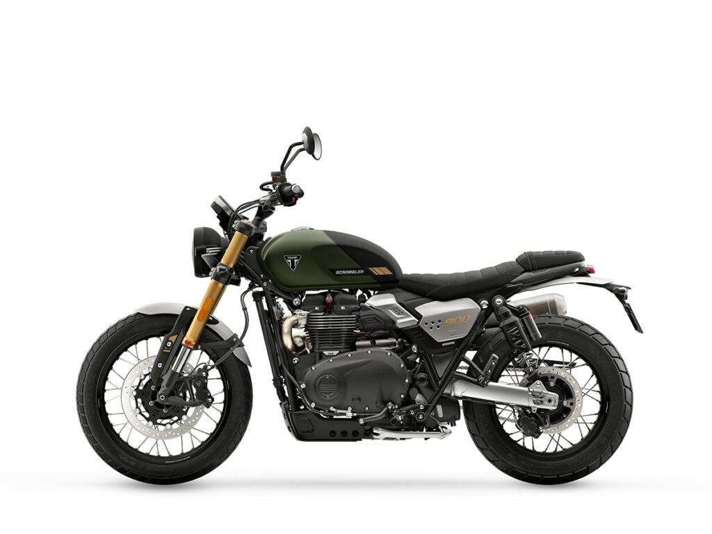 Om met die eerste te beginnen, ook de 65 pk en 80 Nm sterke 900 krijgt een upgrade van de elektronica in de vorm van hellingshoekafhankelijke tractiecontrole en ABS en daarnaast is ook het rijwielgedeelte aangepakt. Het buizenframe is licht aangepast en wordt nu gecombineerd met een compleet nieuwe aluminium swingarm. Bovendien heeft de klassieke telescoopvork nu plaatsgemaakt voor een Ø 43 mm upside-down exemplaar van Showa, waarbij diezelfde fabrikant ook de nieuwe duoshocks met piggyback reservoir achter levert, waarvan de veervoorspanning instelbaar is. Lichtere aluminium velgen met Metzeler Tourance schoeisel en een grotere Ø 320 mm remschijf voor met radiale remklauw ronden de upgrade van het rijwielgedeelte af. Wel kreeg de 900, die standaard onder meer beschikt over drie rijmodi (Road, Rain en Off-road), een nieuw dashboard met een klassieke, ronde behuizing dat een LCD-display en TFT-scherm combineert. De nieuwe Scrambler 900 is verkrijgbaar in de bekende kleurstelling grijs/zwart, die bijval krijgt van een tweetal nieuwe kleuren: groen/zwart en grijs/geel. Prijzen beginnen bij € 13.395,-.