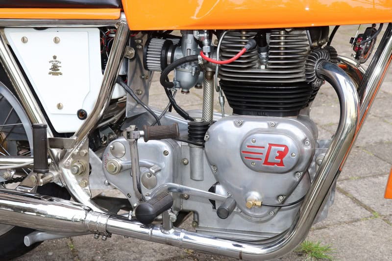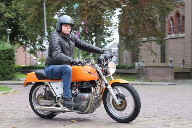 Henk Noordbruis is al zijn hele leven een fanatiek motorenthousiast, met als bijzondere eigenschap het feit dat hij veel van de motoren die hij ooit aanschafte nog steeds heeft. Hoe vaak hoor je niet ‘Die had ik nooit moeten verkopen’ of ‘Ik wou dat ik die nog had’. Dat vond Henk ook in veel gevallen en daarom bezit hij nu een bijzondere verzameling van 21 motorfietsen. Je zou dus denken dat hij zo’n beetje elke fiets bezit die hij zich kan wensen. Toch komt er af en toe nog een bij die al jaren op zijn verlanglijstje staat, zoals een klassieke Royal Enfield Interceptor uit de jaren zestig. “Zo zocht ik ook een Royal Enfield Interceptor Stage 2, een behoorlijk zeldzaam model, zeker in ons land. Vandaar dat ik ook mijn Schotse vrienden Mel en Euan McGilp vroeg ernaar uit te kijken. Zij brachten mij op het spoor van deze Rickman-uitvoering. Hoewel ik een standaard Enfield zocht, voelde ik mij meteen aangetrokken tot dit unieke model. Deze motor was ooit nieuw door Rickman geleverd aan Tony Higgins, een begaafde techneut, die deel uitmaakte van het ontwerpteam van het beroemde Concorde straalvliegtuig. Na zijn overlijden belandde de motor bij zijn dochter. Inmiddels had een Engelse journalist van het blad Classic Bike Guide er een verhaal over geschreven, maar dat was nog niet gepubliceerd toen ik hem op het spoor kwam, dus was het belangrijk om snel toe te slaan, want met de publiciteit in zo’n gerenommeerd blad zouden er ongetwijfeld meer kapers op de kust zijn gekomen, waardoor zo’n uniek collectors item niet goedkoper zou worden.”