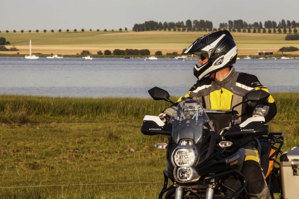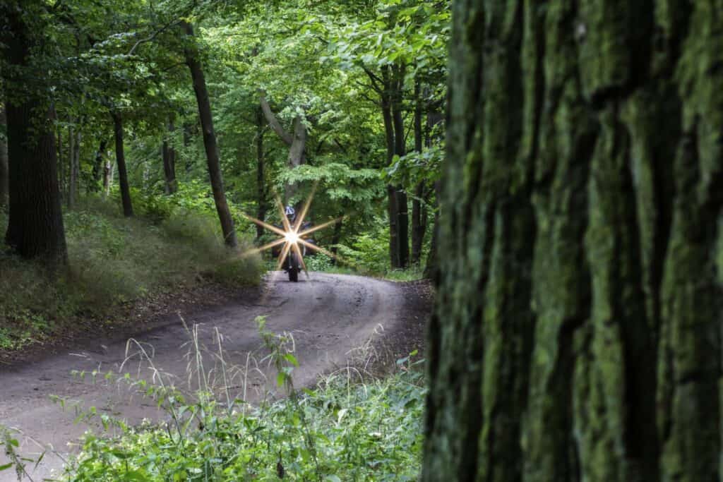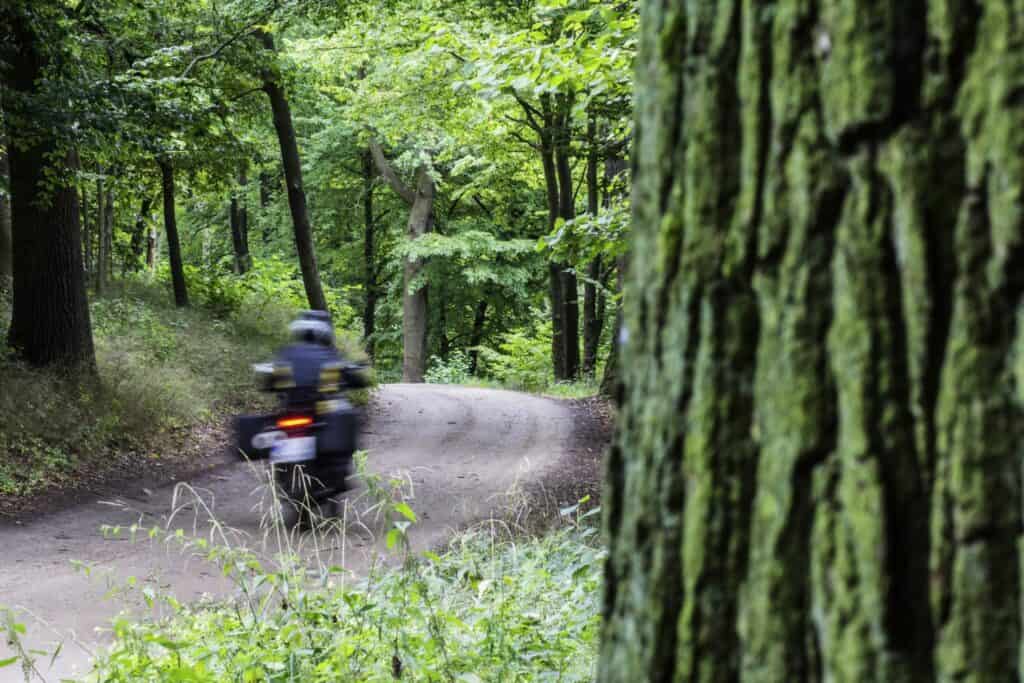 De Oostzee, de Baltische Zee, ligt achter me. Nog is het niet donker, maar ik kan de lichtkegel van de schijnwerper al onderscheiden op de voorbijschietende boomstammen. Met een gedempt geluid scheur ik met de motor door de kaarsrechte loofgroene ‘tunnelbuizen’. Dit hadden eigenlijk lanen moeten zijn, maar de hemel is niet te ontdekken door het dichte gebladerte. Af en toe ga ik van de weg af en rijd over onverharde wegen om uiteindelijk aan de oever van een of ander meer uit te komen. Ik heb geen noppenbanden op de motor en rijd daarom dienovereenkomstig braaf. Dan nog, wie wil er nou herrie maken in de stilte van het Mecklenburgse merenplateau?