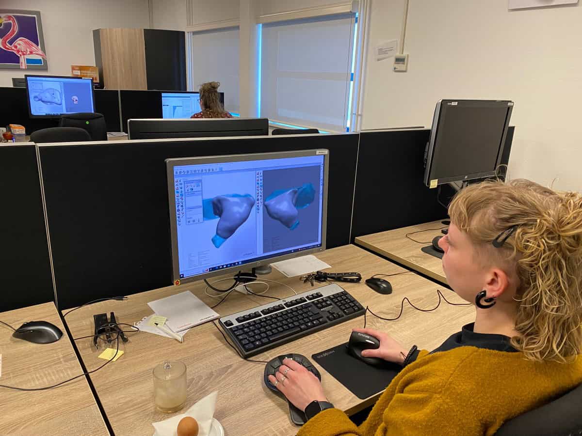 Bij Pluggerz kregen we meteen even een rondleiding door de productieafdeling, en konden we ons verbazen over de omvang van deze specialist: ruim 140 mensen maken er dagelijks rond de 1.400 sets op maat gemaakte oordoppen en gehoorapparaten. In totaal zijn er zeven ‘stations’ bij de productie van een oordop: het aanmeten, het 3D-inscannen van die oorafdruk, het maken van de oordop van die scan, het 3D-printen, het vullen met siliconen bij een zachte siliconen-dop, het afwerken en de eindcontrole plus verzending. Over ruim een week hopen we de eerste ritten te gaan maken met de nieuwe oordoppen met communicatie, waarna we er middels een praktijktest in MotoPlus op terug gaan komen.