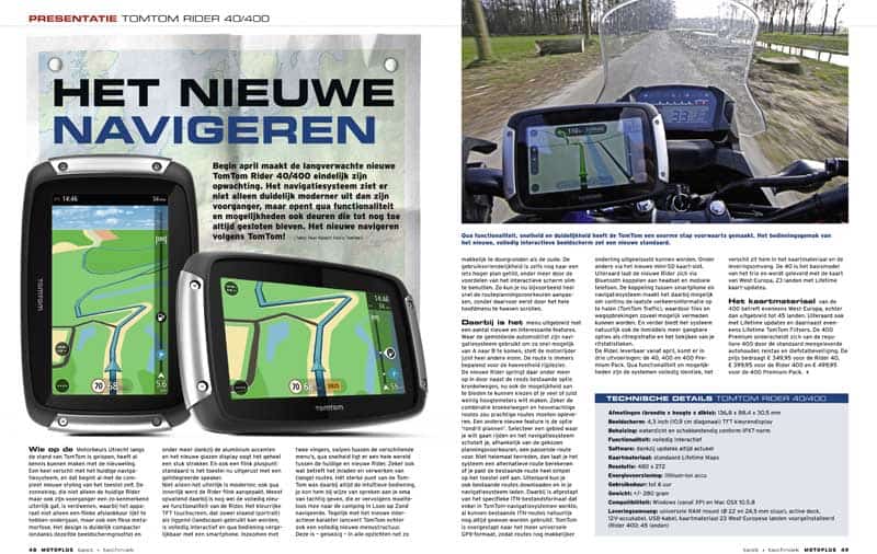 Begin april maakt de langverwachte nieuwe TomTom Rider 40/400 eindelijk zijn opwachting. Het navigatiesysteem ziet er niet alleen duidelijk moderner uit dan zijn voorganger, maar opent qua functionaliteit en mogelijkheden ook deuren die tot noch toe altijd gesloten bleven. Het nieuwe navigeren volgens TomTom!