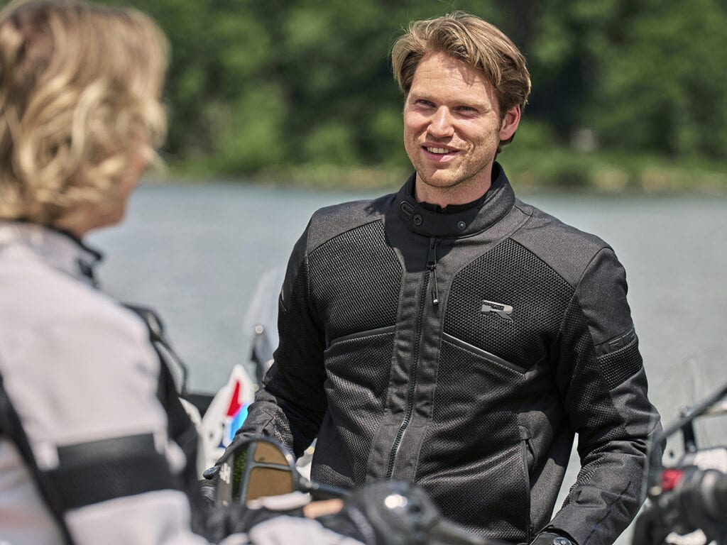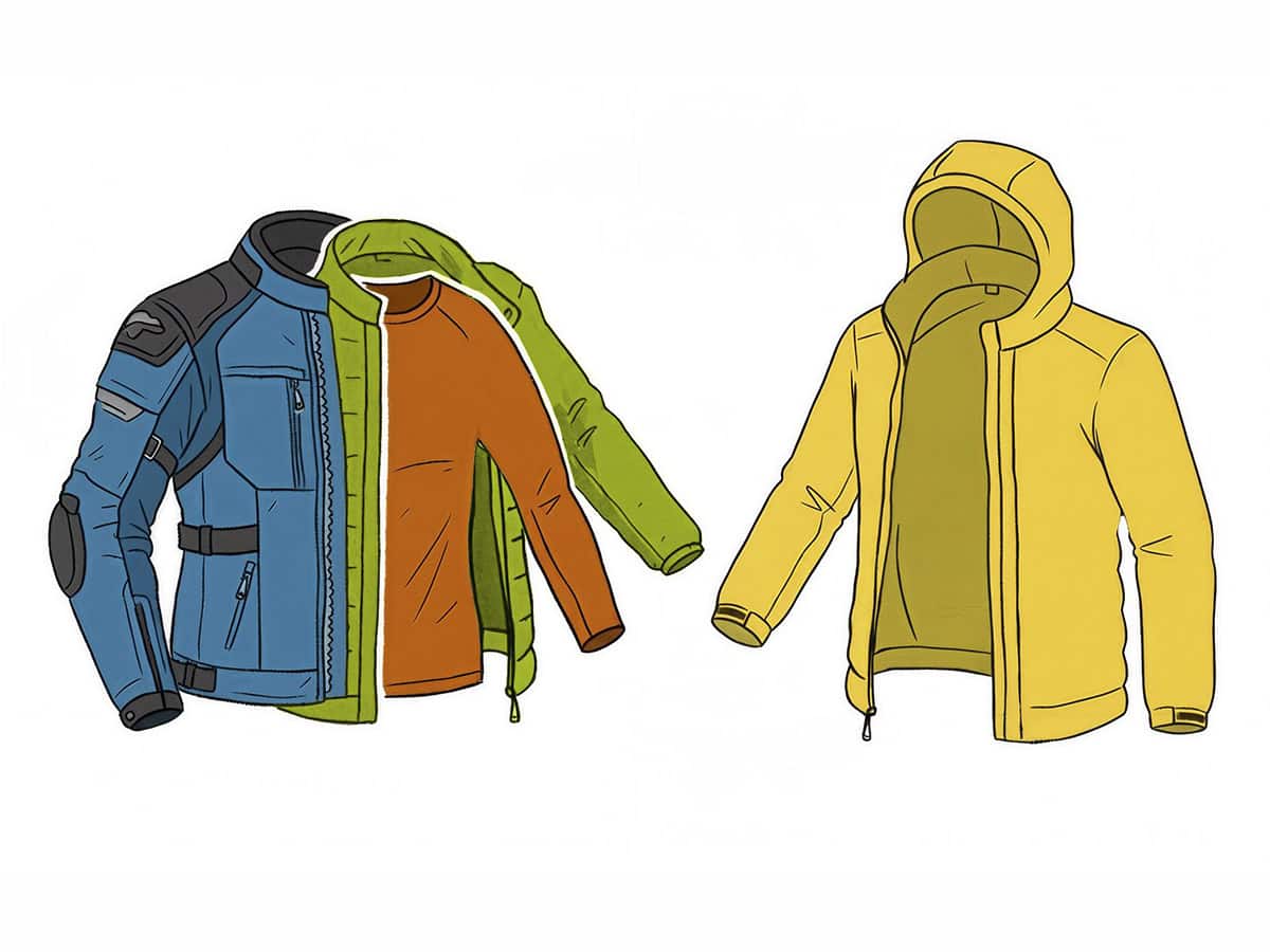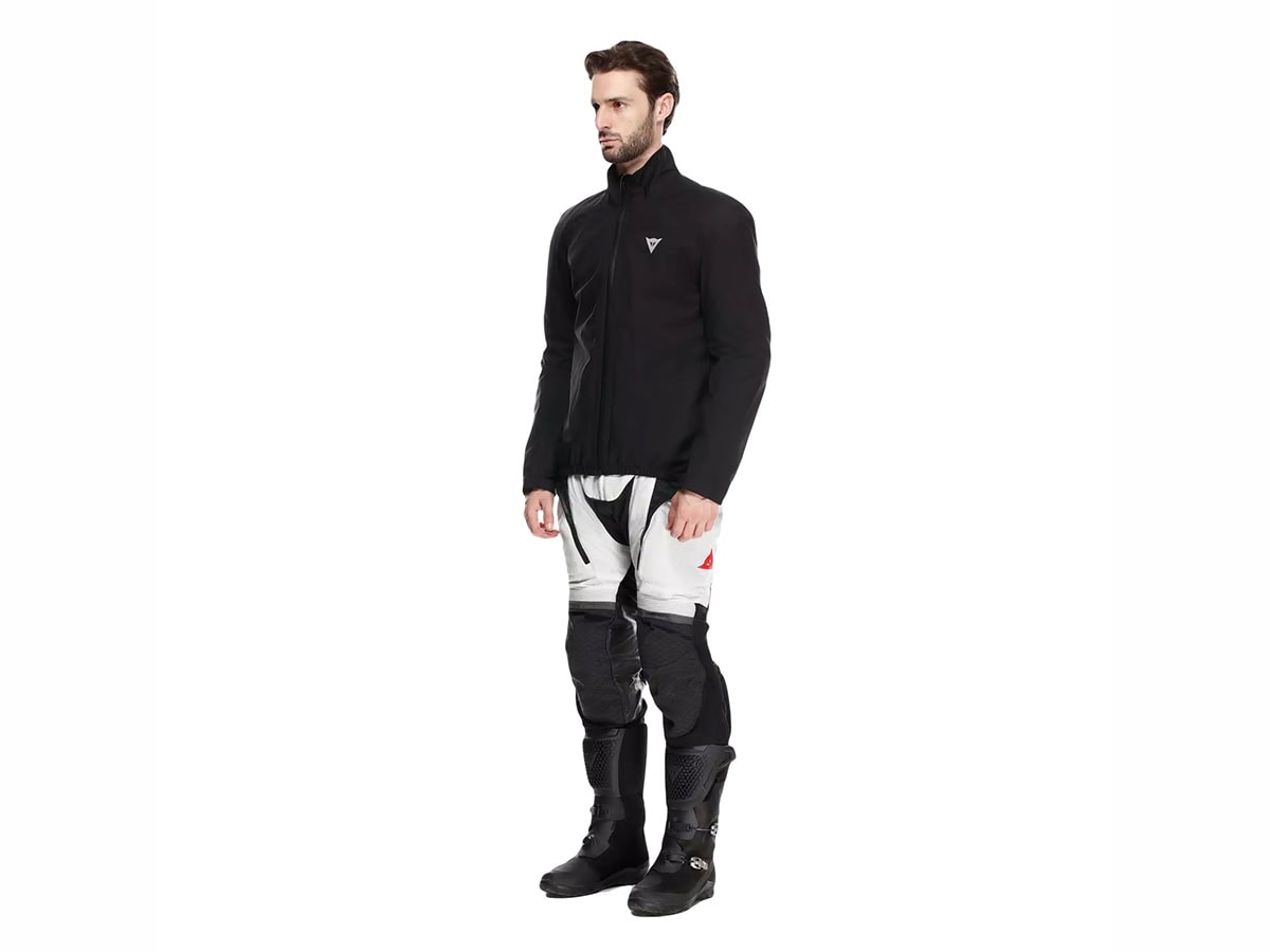 Tot nu. Dankzij moderne, elastische en scheurvaste materialen is er tegenwoordig een vierde weg: de modulaire over-and-under membraanjas. Eén en dezelfde waterdichte laag die je ónder je motorjas draagt als klassieke binnenjas, maar net zo makkelijk óver je pak trekt bij een plotselinge hoosbui. In sommige gevallen is de waterdichte laag zelfs zó strak en casual ontworpen dat je ’m ook als gewone regenjas in het dagelijks leven kunt dragen, zonder opvallende lussen, ritsjes of drukknopen.
