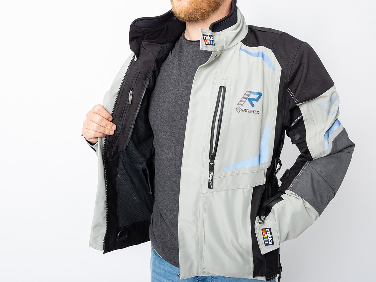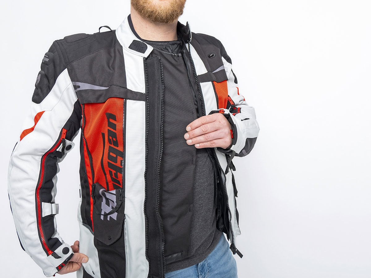 Het grote voordeel? Ventilatie en prijs. Omdat de hoofdjas niet permanent van een membraan is voorzien, kunnen fabrikanten eindelijk weer voluit werken met grote mesh-panelen en echte luchtstroming. En waar gelamineerde high-end pakken de hoofdprijs vragen, biedt dit concept vaak een veel vriendelijker totaalplaatje. Op papier klinkt het als de ideale allround-oplossing, maar hoe doen deze jassen het in de praktijk als het écht doorregent, als je vol gas over de snelweg rijdt of urenlang in wisselende omstandigheden onderweg bent?