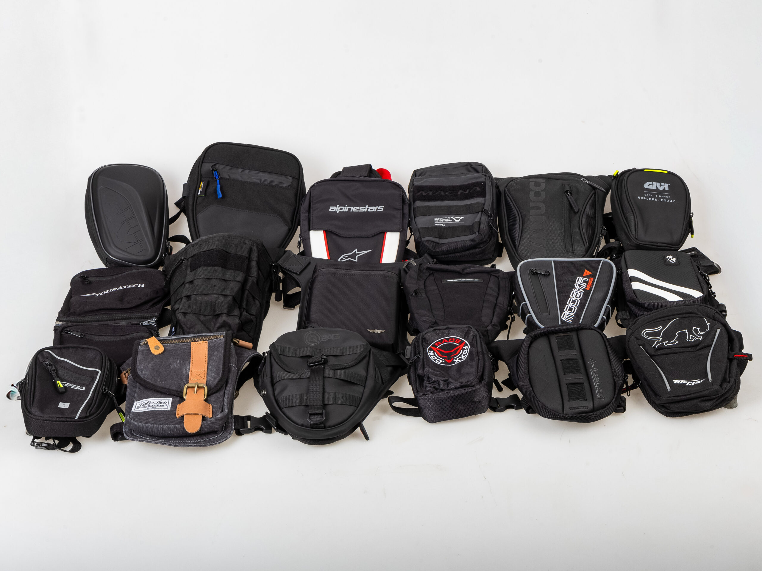 Niet geheel onbelangrijk is natuurlijk de hoeveelheid opbergruimte. Op een dagtocht heeft de gemiddelde motorrijders inmiddels behoorlijk wat bij zich: mobiele telefoon, portemonnee, huissleutels, zonnebril/opbergdoos, zakdoekjes en voertuigpapieren. Daar verslikten een aantal testdeelnemers zich al bijna in. Het meest praktisch blijken de tassen met een doordachte vakverdeling en/of uitbreidingsmogelijkheden van het pakvolume. Een praktische indeling maakt het mogelijk om je spullen overzichtelijk op te bergen en ze snel terug te vinden wanneer het moment daar om vraagt. Ook niet onbelangrijk is het ‘draagsysteem’ van de tas, deze zit het meest stabiel wanneer heup- en dijriem rechtstreeks met de tas zijn verbonden in plaats van via een extra verlengriem. Dat laatste komt de stabiliteit niet ten goede namelijk en dat kan natuurlijk niet. Een stabiele relatie met je side-kick is immers een absolute voorwaarde voor succes!