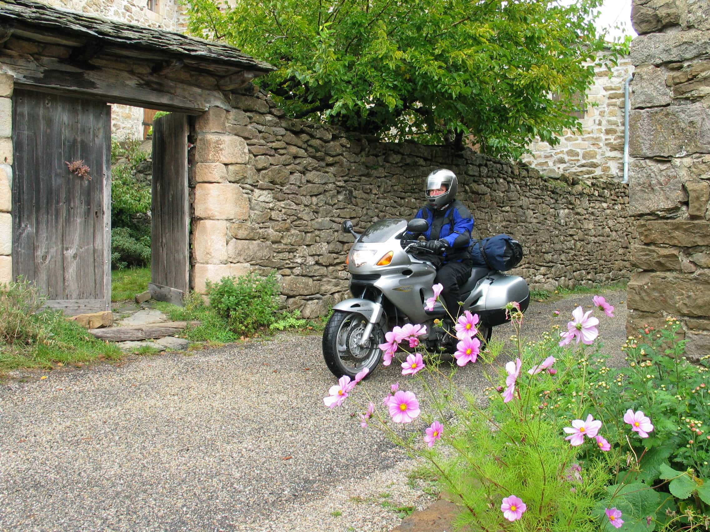 Iets ten zuiden van Chamborigaud splitst de D52 zich af naar het westen. De bochten volgen elkaar in rap tempo op, de weg is getransformeerd tot een ware droom voor motorrijders. We moeten echter op onze hoede zijn. De voor de Cevennen typische boom, de kastanje, staat hier kilometerslang aan weerszijden van de weg. Deze laten hun vruchten in grote hoeveelheden op het asfalt vallen, waar ze door de banden van de auto’s tot gladde kastanjepuree geplet. Dat maakt de rit niet minder fantastisch, en zelfs de plotselinge, hevige regenbui die ons overvalt in Le Pont-de-Monvert verandert dier niets aan. Het pittoreske plaatsje aan de nog jonge Tarn, die noordoostelijk van hier op de Mont Lozère op 575 meter hoogte ontspringt, biedt een mooie gelegenheid voor een korte stop. Het enige café wordt voor ons en vele anderen een toevluchtsoord. De kleine ruimte is tot de laatste plaats gevuld. Er wordt gepraat, gegeten, gedronken, kinderen en honden ravotten tussen tafels en stoelen. Wanneer de regen stopt, draaien de motoren echter alweer snel.