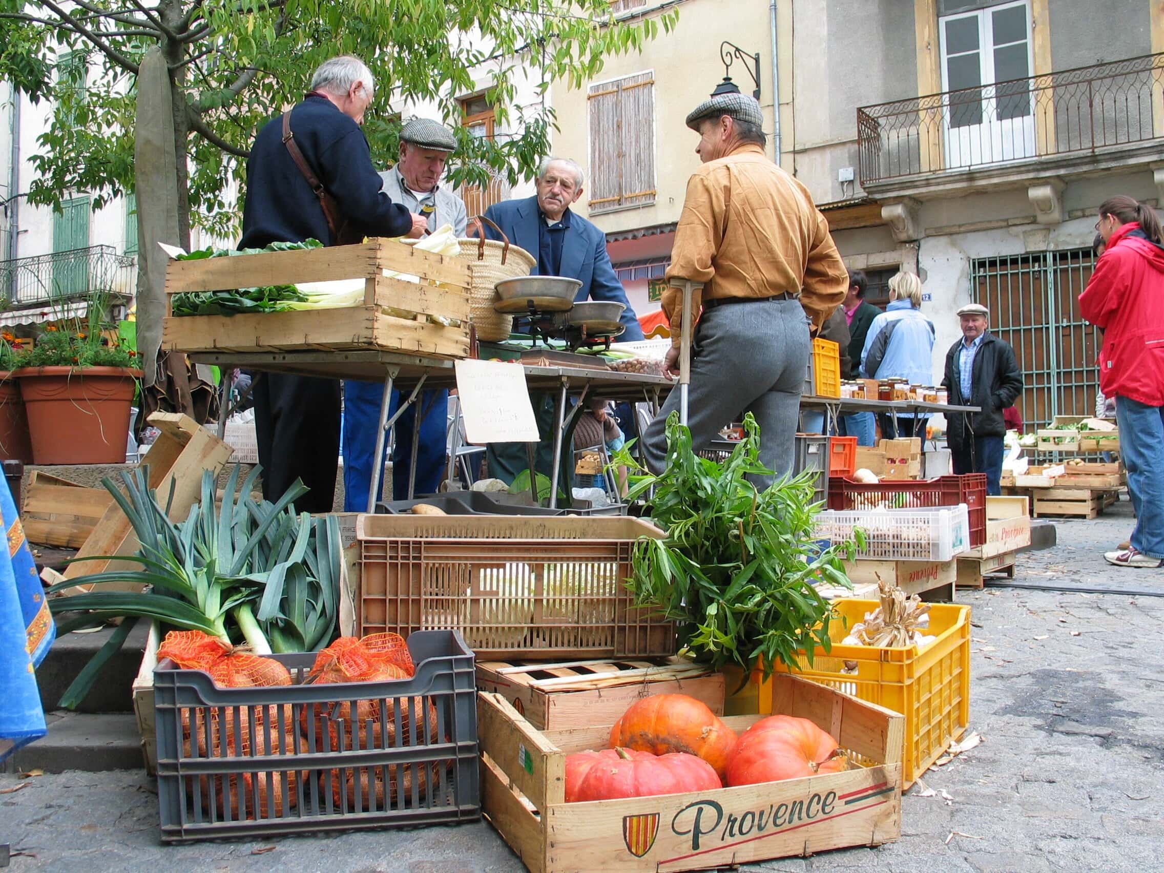 Het stel dat we gisterenavond spraken weet ook waar het dichtstbijzijnde tankstation met hogedrukreiniger is: in Le Vans. Daar verwijderen we de volgende ochtend eerst het grove vuil van onze motoren. Eigenlijk zouden we nu meteen verder moeten gaan de bergen in, maar het is marktdag in de stad. En iedere Francofiel weet, marktdag mag je niet missen. De straten staan vol met honderden kraampjes. Verderop in de zijstraten zijn er stalletjes met kleurrijke stoffen, gordijnen, tafelkleden, boeken, messen, speelgoed, horloges, sieraden en al wat meer. Een brede variëteit, kleurrijk ook, en nogal onoverzichtelijk, maar daarom juist doorspekt met charme. Het wordt pas echt interessant wanneer we meer in de buurt van het centrum komen, want daar wachten talloze culinaire hoogstandjes. We slenteren twee uur lang tussen de marktkraampjes rond en kopen hier en daar wat kaas, worst, fruit en brood. Precies zoveel als onze rugzakken wegslikken. De geplande ‘bergetappe’ wordt uitgesteld tot de middag. Eerst gaan we terug naar onze accommodatie om de gekochte lekkernijen weg te leggen. Oké, en ook deels te proeven. Met uitzondering van de rode wijn dan, want we willen wel degelijk nog even op pad vanmiddag. Aldus geschiedde!
