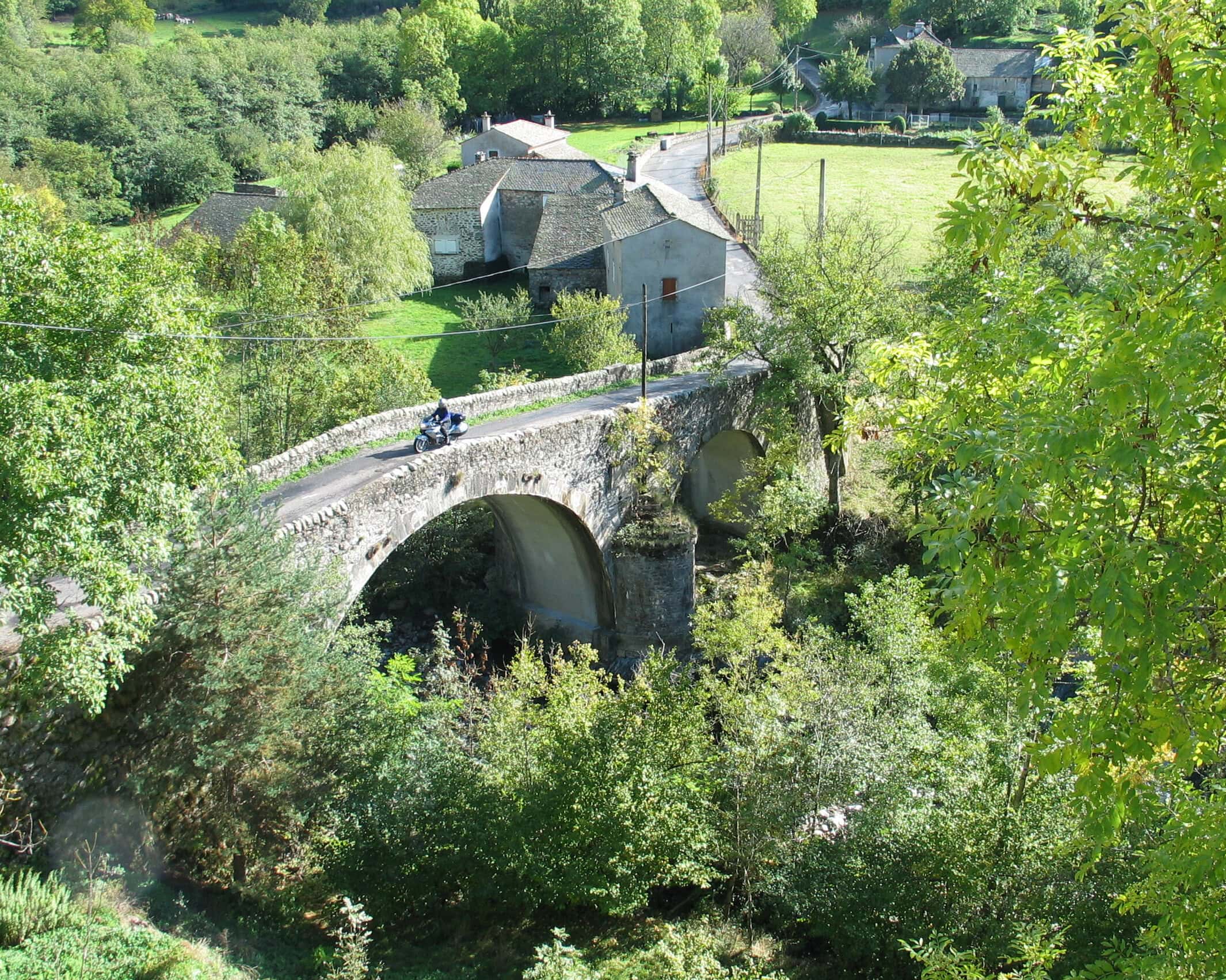 Een smalle weggetje slingert zich voortdurend langs een steile helling begroeid met steeneiken en laag struikgewas door het landschap. Richting het dal wordt de weg omzoomd door een laag stenen muurtje, daarachter en ver beneden ons, baant de rivier Luech zich moeizaam een weg door de vallei. Kronkelt vervaarlijk tussen puin en rotsen door. Dan gaat de rit ons duidelijk gemakkelijker af, onder wisselende hellingshoeken werken we ons tevreden van bocht naar bocht. De weg daalt om onderin vervolgens de rivier over te steken. Op de achtergrond is het in een wijde boog gebouwde spoorviaduct bij Chamborigaude te zien, die zich sierlijk met zijn slanke pijlers en hoge bogen op het netvlies print. We stoppen even om de wind op te snuiven. Het weer lijkt goed te blijven en al snel zijn we op de bochtige weg naar het Cevennenstadje Florac.