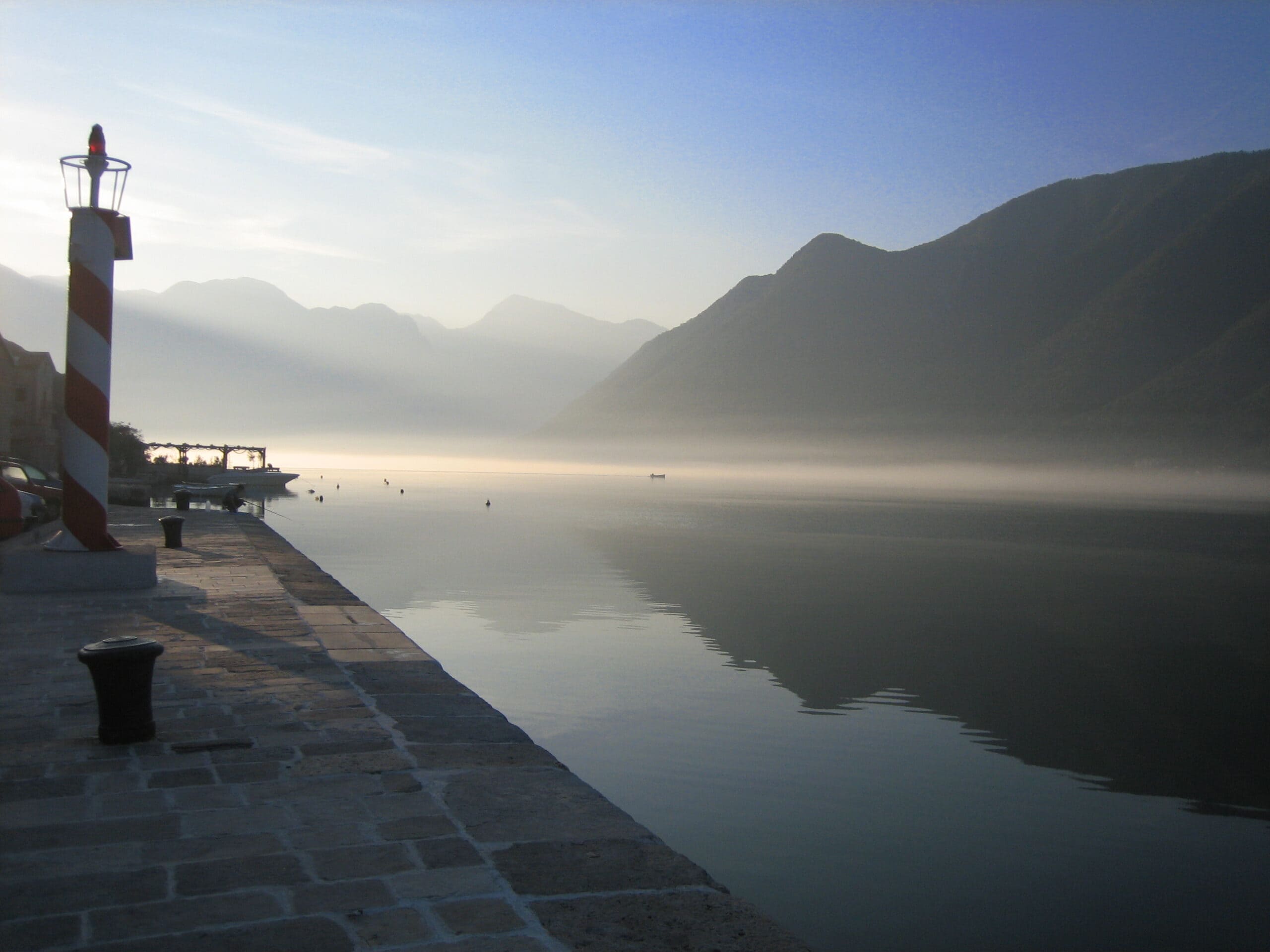 Als je niet beter zou weten, dan zou je Noorwegen zeggen. En als het niet aan de Adriatische Zee lag, zou het een fjord heten. Maar het water dat zich voor ons uitstrekt tussen de steile bergen wordt een baai genoemd, de baai van Kotor om precies te zijn. De hoogtemeter op onze GPS geeft 1.307 meter boven zeeniveau aan. Niet heel bijzonder, tenzij je vanaf daar nog steeds de zee kunt zien. En dat niet alleen, het gaat nog hoger. Een paar uur geleden kwamen we via Herceg Novi Montenegro binnen, precies op het moment dat de scholen uit waren. De kinderen waren op weg naar huis, modieus gekleed, zoals je in moderne steden als Rome of Barcelona zou verwachten. Schoolbussen met grote rookpluimen kropen de helling van de stad op, maar gelukkig konden we die niet veel later achter ons laten. En toen verscheen Perast, een ongelooflijk fenomeen in de baai van Kotor. Een dorp met villa’s van voormalige scheepseigenaren, een kerk die niet zou misstaan in Venetië en twee bijzondere eilanden. Het ene, Sveti Dorde, dient als begraafplaats en op het andere, Our Lady of the Rocks, staat een klein klooster. De muren van dat klooster staan op een kunstmatig eiland. Eeuwenlang gooiden dorpelingen stenen in de baai en lieten zelfs schepen vol met stenen zinken, tot er uiteindelijk een eiland zichtbaar werd aan het wateroppervlak. Dertienhonderd meter boven zeeniveau, dertien minuten over vijf op de klok. Als we in een wijde boog over de bergen naar Kotor rijden, is het zeker donker bij aankomst. En aangezien duisternis altijd een gegronde reden is om een slaapplaats te vinden, zoeken we toch maar een andere route. Het alternatief is om terug te rijden naar de baai en via Perast, dat we tot nu toe alleen van een afstand hebben gezien, naar Kotor te rijden. Waarom ook niet?