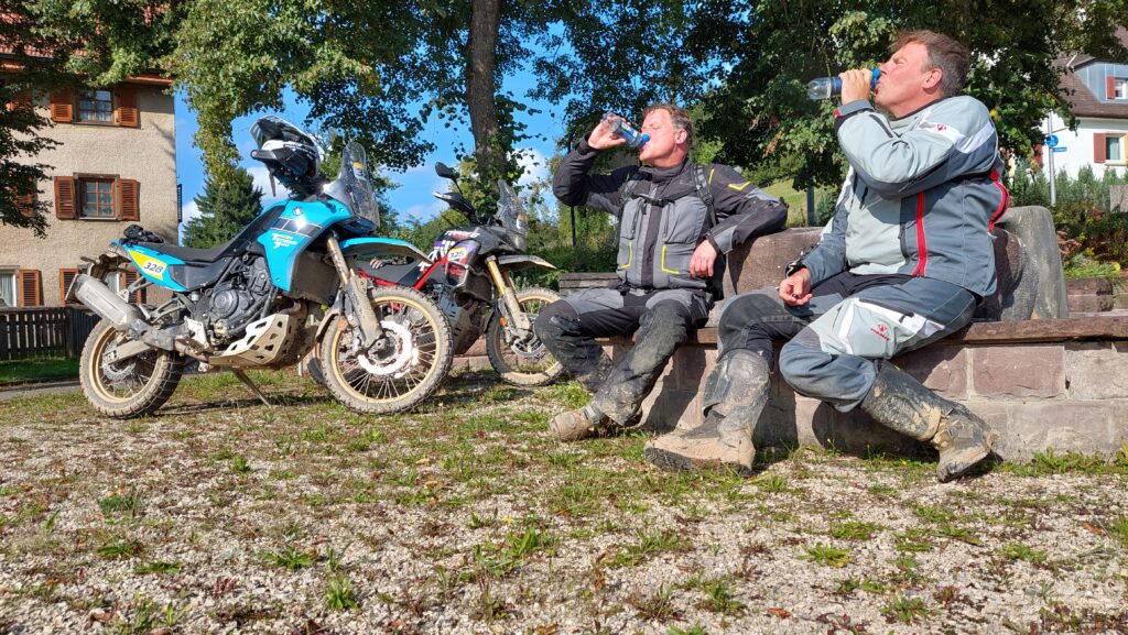 Aldus trekken we halverwege september naar het nog geen zesduizend inwoners tellende gehucht in de Zuid-Duitse deelstaat Baden-Württemberg, en wel met een Yamaha Ténéré 700 en Aprilia Tuareg 660, beide in de Rally-variant. De Active Adventure is namelijk niet bedoeld voor hardcore enduro’s, maar voor adventures à la BMW GS & Co. Bijna 350 deelnemers telt het evenement, die allemaal ’s avonds bij de voornoemde briefing aanwezig zijn, want verplichte kost. En daar blijkt het allemaal net even wat anders in elkaar te zitten dan gedacht!