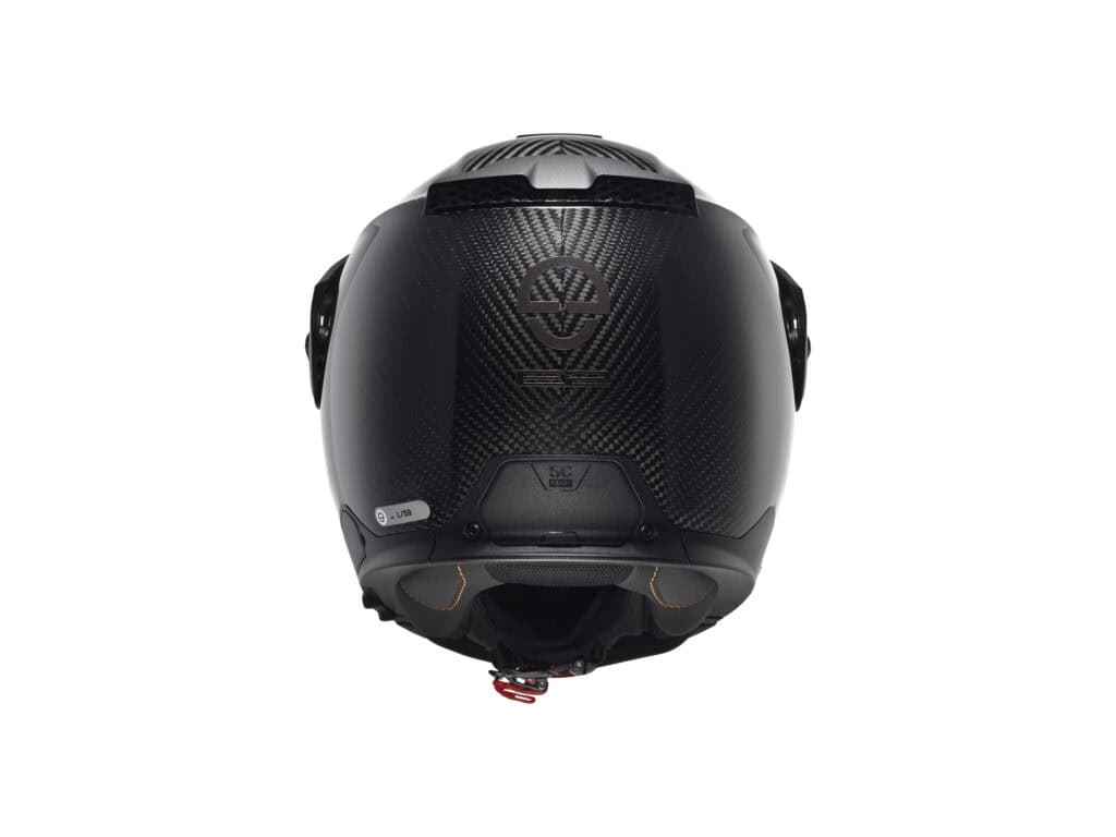 Verder is de E2 Carbon voorzien van Schuberth’s ‘Anti-Roll-Off-System, geïntegreerd zonnevizier en een speciale antibacteriële en ademende voering, die naar wens ook individueel kan worden aangepast. De klep is afneembaar en verstelbaar en is, net als het nieuwe viziermechanisme, voorzien van een handige memory-functie. De E2 Carbon is voorbereid op de Schuberth SC2-communicatiesysteem met Mesh 2.0-technologie.