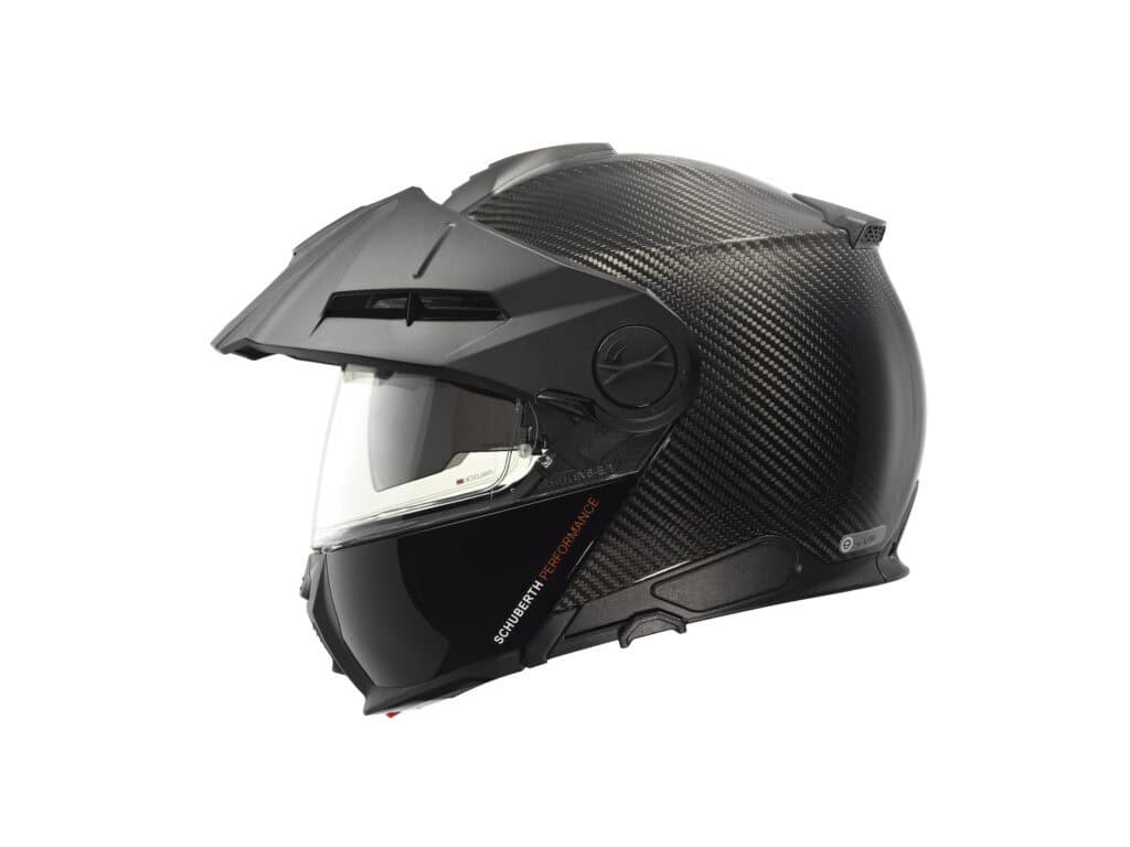E2 Carbon heet ‘ie, Schuberth’s nieuwste adventure-helm. En het is niet zomaar een carbon helm, hij is namelijk handgemaakt, door hetzelfde team specialisten dat ook Schuberth’s F1-helmen maakt. De helm heeft een volledig carbon schaal, wat hem erg licht maakt (1.640 gram in maat M en L), en uiteraard is de E2 Carbon ECE 22.06- én P/J-gehomologeerd. De E2 Carbon wordt door Schuberth geproduceerd volgens het ‘one man, one shell’-principe, waarbij een en dezelfde persoon het gehele lamineerproces van de helmschaal voor zijn rekening neemt.