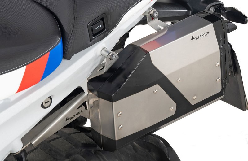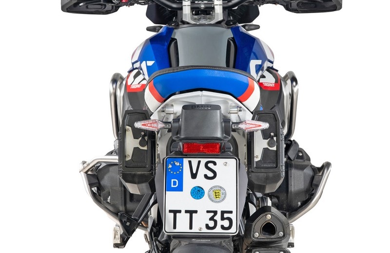 Misschien vind je een bagagerek niet mooi, of misschien zit je er offroad niet op te wachten. Touratech kreeg in ieder geval vaak genoeg de vraag of de gereedschapkoffertjes ook zonder rek te monteren waren. Dankzij een nieuw ontwikkelde montageset kan dat nu. Omdat de koffertjes dicht op de motorfiets zitten, blijft de achterkant van de GS slank.