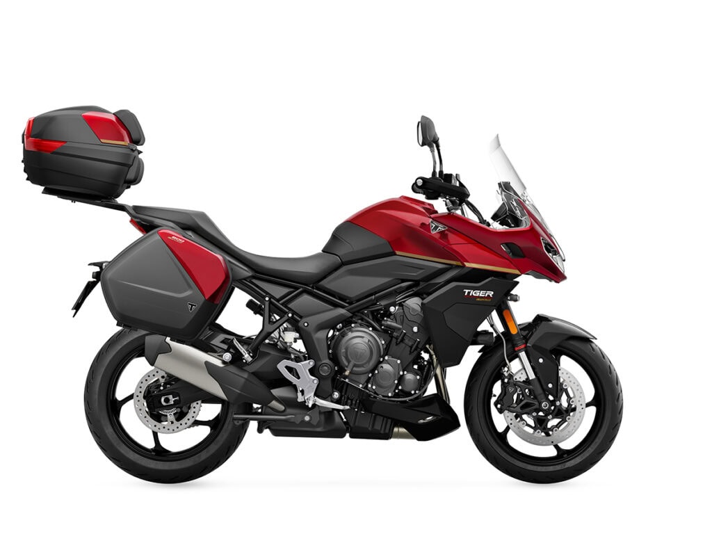 De nieuwe Tiger Sport 800 Tour, net als de reguliere versie standaard uitgerust met een uitgebreid elektronicapakket met onder meer hellingshoekafhankelijke tractiecontrole en ABS, evenals een quickshifter, weegt rijklaar 232 kilo, achttien kilo meer dan de basisversie. Hij is leverbaar vanaf februari 2026 in de kleuren Matt Cobalt en Carnival Red voor de prijs van € 15.995,- (B € 14.995,-). Info: www.triumphmotorcycles.nl