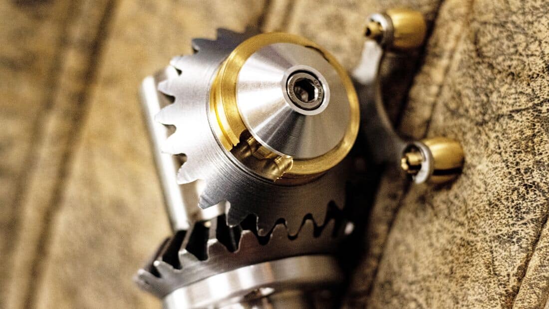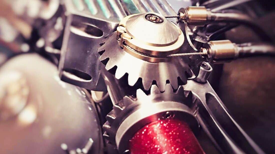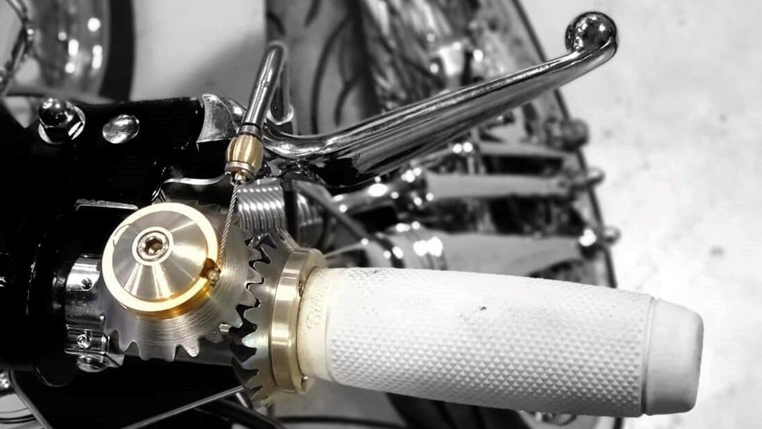 Misschien wel het mooiste gashendel ter wereld heeft Mario Hartmann’s firma Inmaxwetrust in de aanbieding. Deze Maxthrottle 1 is feitelijk een onderdelenkit bestaande uit rvs, messing, aluminium en bronzen componenten, met als glanzend middelpunt de twee naaldgelagerde kegeltandwielen van molybdeen. Die laatste twee zijn precisiewerk uit Zwitserland, de rest van de kit wordt in Oostenrijk vervaardigd. Samengevoegd is het een waanzinnig fraai mechaniek met een enorme esthetische waarde, zeker op een karaktervolle retro of stoere cruiser.