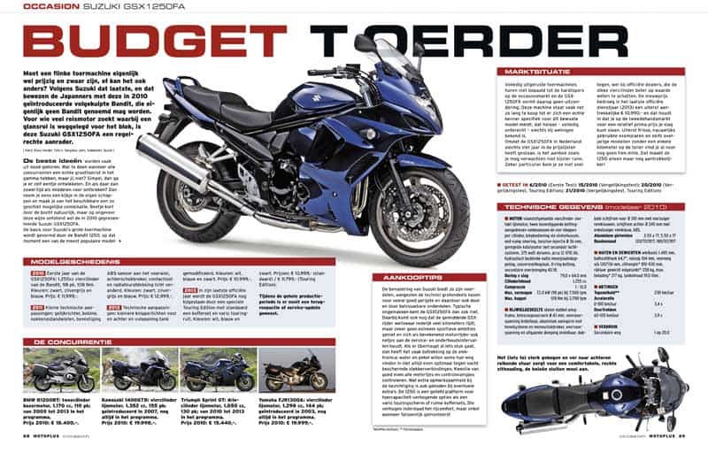 Bovendien spreekt het rijwielgedeelte fijner aan. Voor het betere reiswerk zou de GT eigenlijk alleen nog hogere stuurhelften, een beter beschermende ruit (als accessoire te krijgen) en een versnellingsindicator moeten hebben. Eerbetoon aan het compromis dat een sportieve toermotor is? ‘Best of both worlds’ is per slot van rekening toch het doel. Wat dat betreft heb je het met deze Triumph en de Honda VFR eigenlijk wel gehad.Maar kapers zijn er meer dan genoeg, niet in de Karpaten, maar gewoon op de Europese wegen. Suzuki’s GSX1250FA bijvoorbeeld, die een gat in het toerprogramma van de Japanners vult. Verstelbaar vario-ruitje en een kofferset met topkoffer en met afstand de voordeligste van de zeven. En lang niet de slechtste ook. De dikke vierpitter rolt diep in de toerenkelder al flink met de Newtonmeters. Zo rustig, zo laagtoerig en toch zo krachtig. Zou goed bij een bruine beer passen die hier nog schijnt voor te komen, maar die we niet te zien krijgen.Zonder terug te schakelen kunnen de andere machines de Suzuki maar moeilijk volgen.