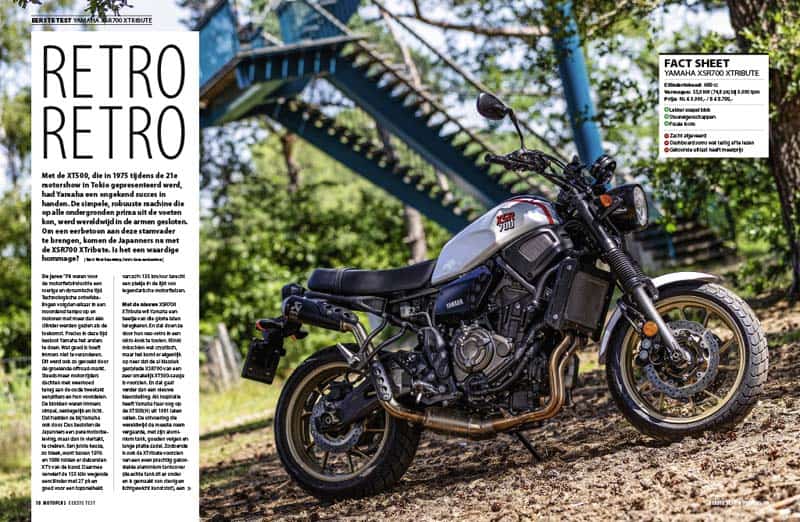 Daar moet ondertussen wel redelijk voor worden betaald, want zoals de XTribute hier staat ben je € 11.594,- kwijt. Bovenop de basisprijs van € 9.999,- komt in dit geval nog € 1.435,- voor het Akrapovic-uitlaatsysteem en € 160,- voor het Vintech-achterlicht. Geen kattenpis dus, temeer daar de MT-07 als basismachine een stuk voordeliger is, inclusief betere vering. Maar die moet het dan zonder die aanstekelijke retro-look stellen. Die is dan misschien niet overal even consequent doorgevoerd, maar het maakt de XTribute wel tot een heel bijzondere motorfiets.
