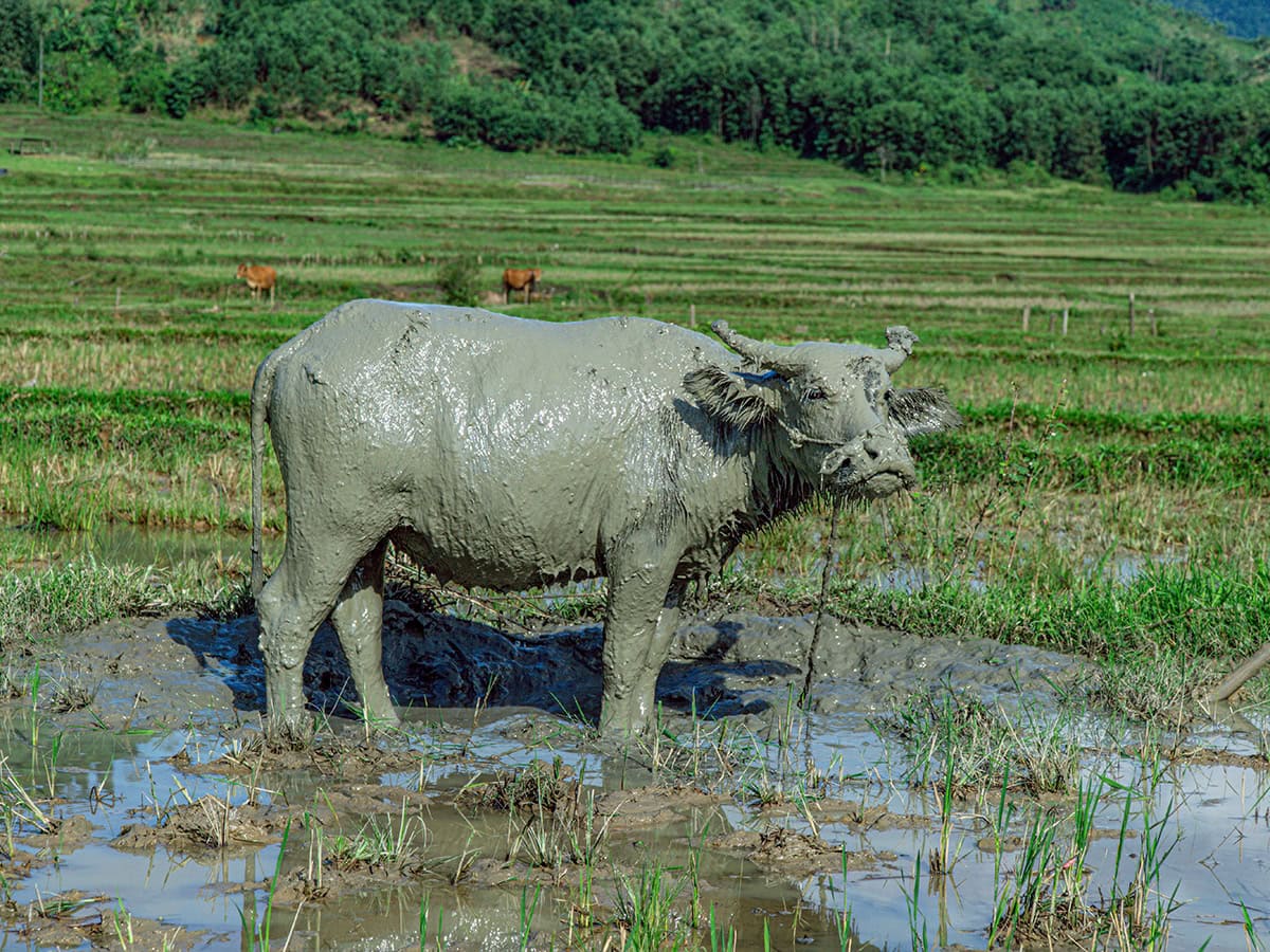 Het goede weer drijft ons de volgende ochtend terug de bergen in. We zijn terug op de Ho-Chi-Minh-snelweg, die een veel gevarieerder landschap biedt dan Highway nr. 1 langs de kust. We hebben nog twee dagen, dan moeten we terug naar de chaos. Het kantoor van Flamingo Travel ligt in het centrum van Hanoi en daar moeten we de motoren weer afzetten.