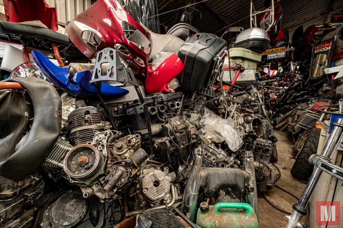 Noem Wegman Motoren vooral geen sloperij: “Het is loop én sloop. Aan de ene kant heb je vijfhonderd lopers en aan de andere kant vijfhonderd slopers.” Een zeer diverse gezelschap ook. Youngtimer Europeanen en Japanners en een paar echte klassiekers (Laverda, Moto Morini, Simplex, Adler, DKW, Puch) staan kriskras door elkaar heen, maar je zoekt tevergeefs naar Harley-Davidsons en Ducati’s. “In Amerika heb ik een keer gereden op een Harley en dat was meer dan genoeg. Ooit had ik een Ducati Paso 750. Je moest je knie in het frame frommelen, in de spiegel zag je alleen het kruis van je duopassagier, vermogen had het ding niet en remmen al net zo min. Wat een secreet van een ding. Ik heb hem omgeruild voor een motorfiets en die staat hier ook nog altijd.”